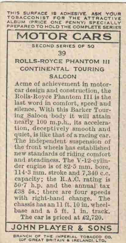 #39 Rolls Royce Phantom (EX/NM) #44 Flying Standard (EX/EX+) spot missing paper on back