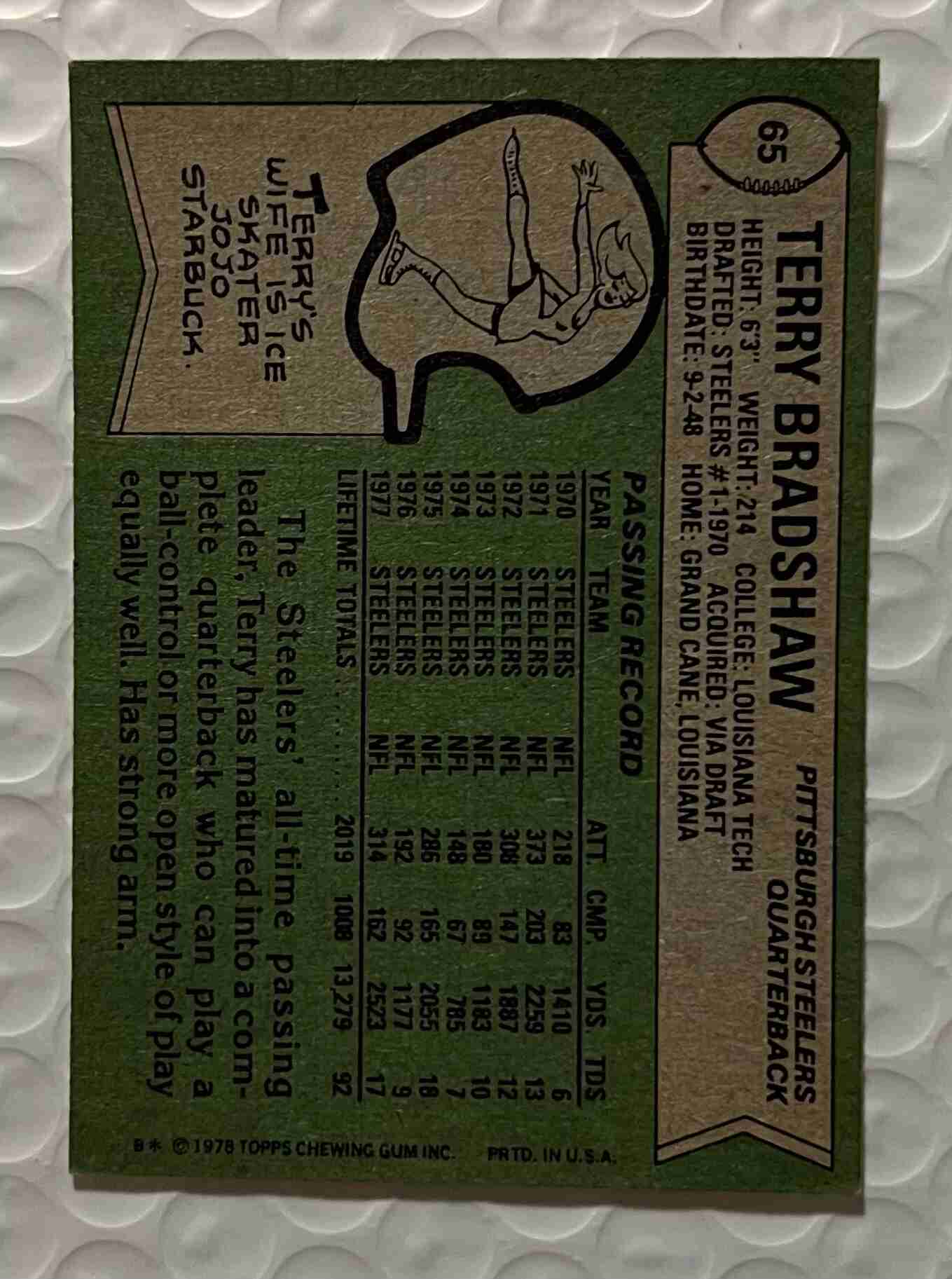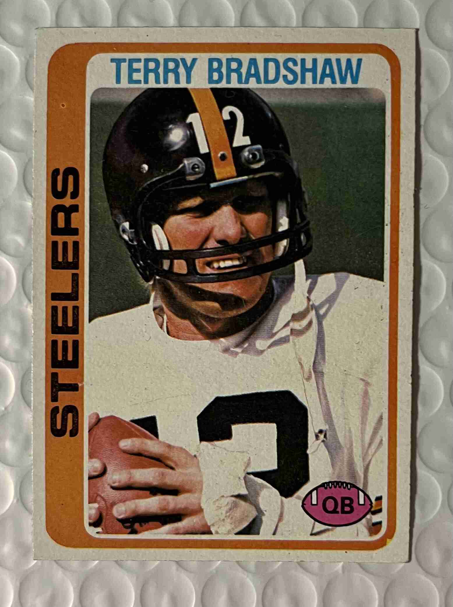 This auction is of a 1978 Topps Terry Bradshaw card. Card is in Ex to Nrmt condition. Look at the pics and judge for yourself. If any questions please feel free to contact me. Thank you for looking at my auctions.