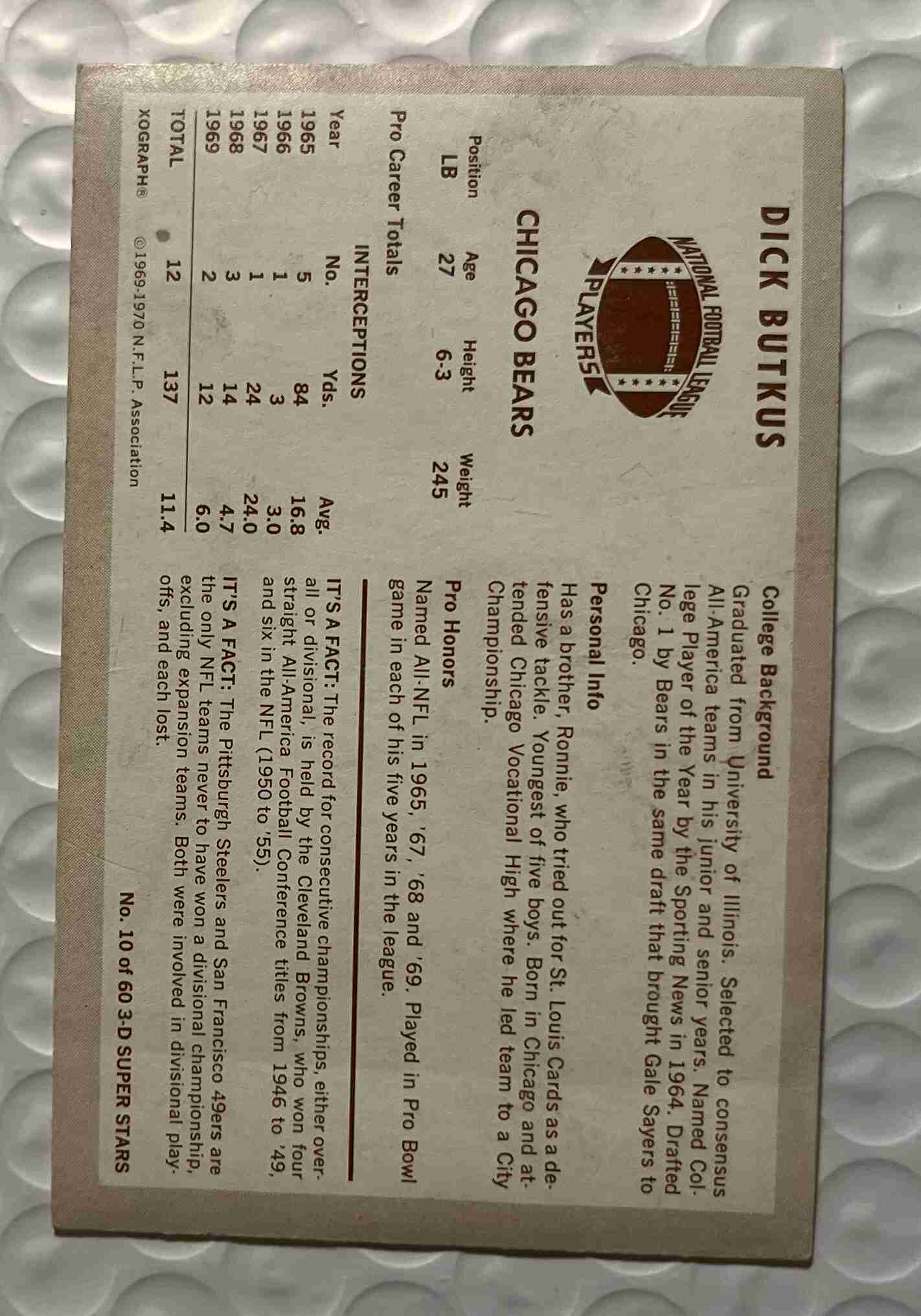 This auction is of a 1970 Xograph Dick Butkus card. Card is in Ex condition. Look at the pics and judge for yourself. If any questions please feel free to contact me. Thank you for looking at my auctions.