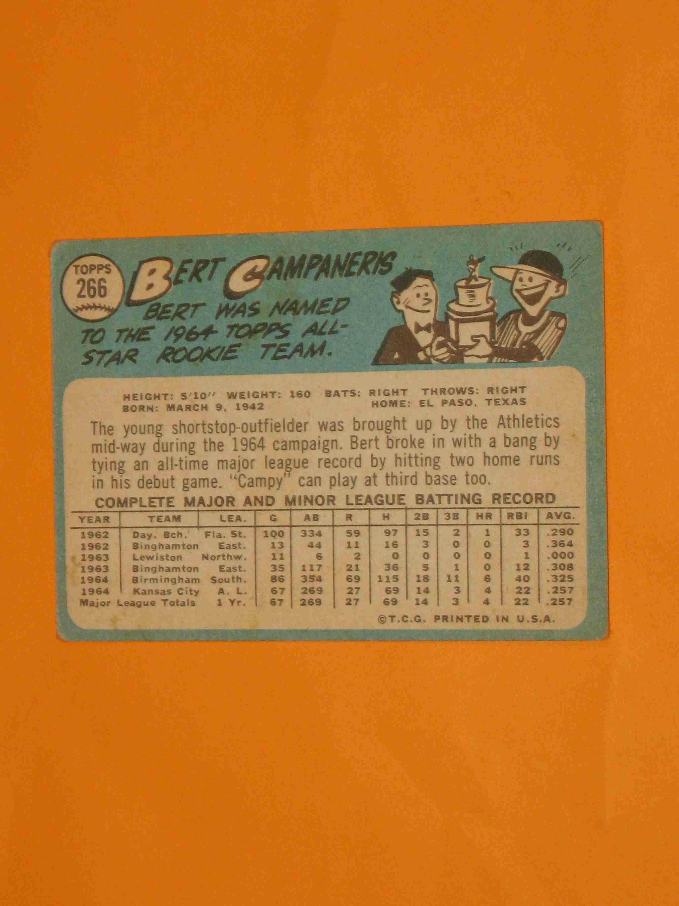 1965 Topps Bert Campaneris #266 Kansas City Athletics RC