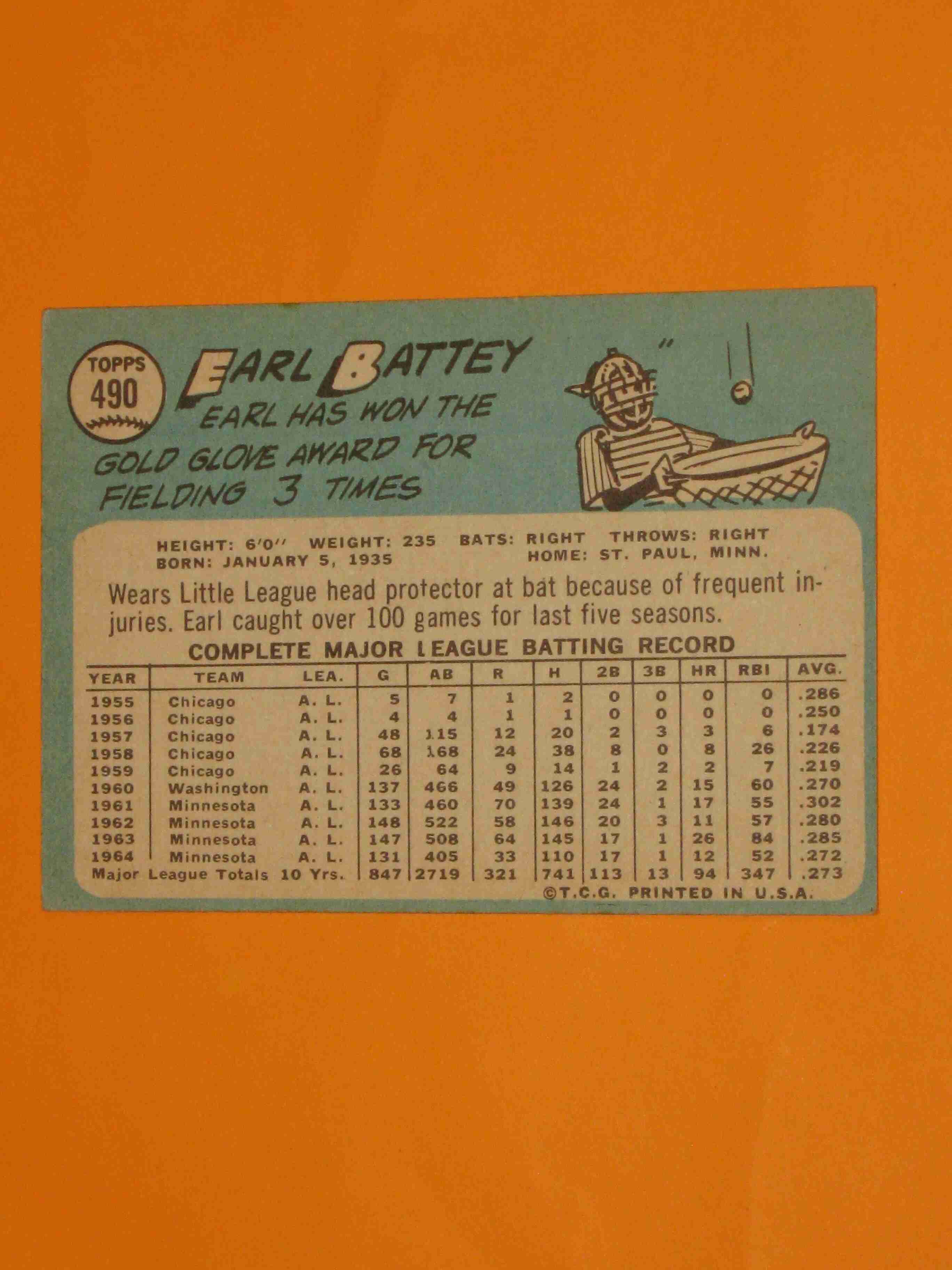 1965 Topps Earl Battey #490 Minnesota Twins HIGH#