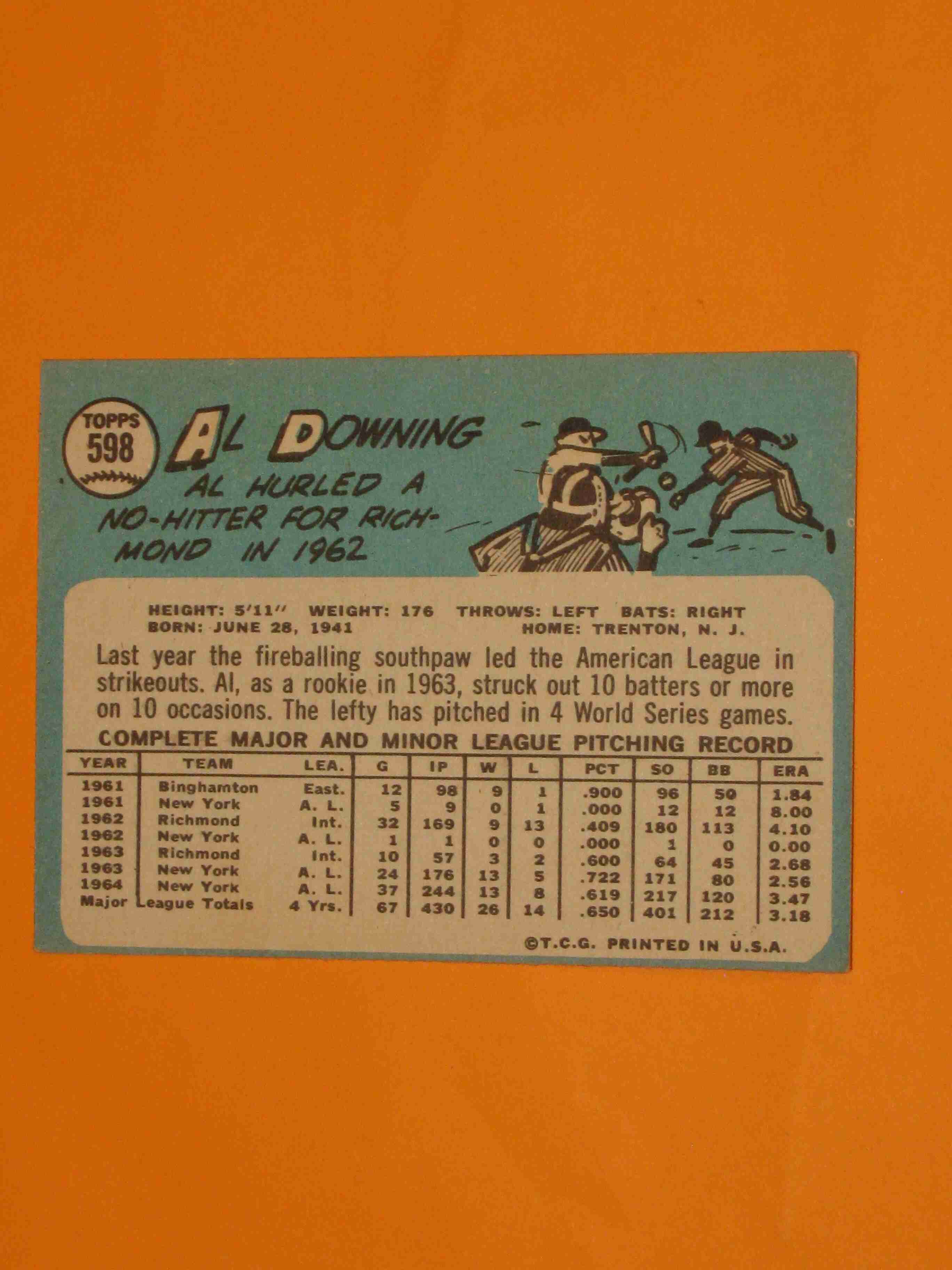 1965 Topps Al Downing #598 New York Yankees HIGH#