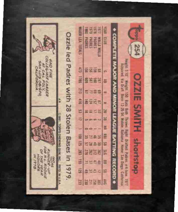 1981 Topps # 254 OZZIE SMITH Padres