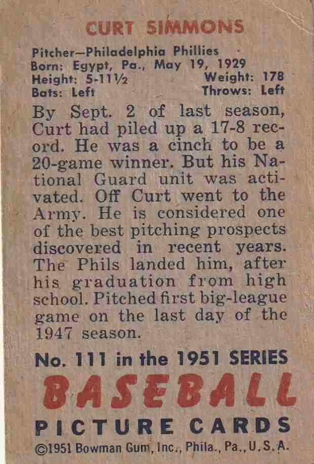 1951 Bowman #111 Curt Simmons Phillies