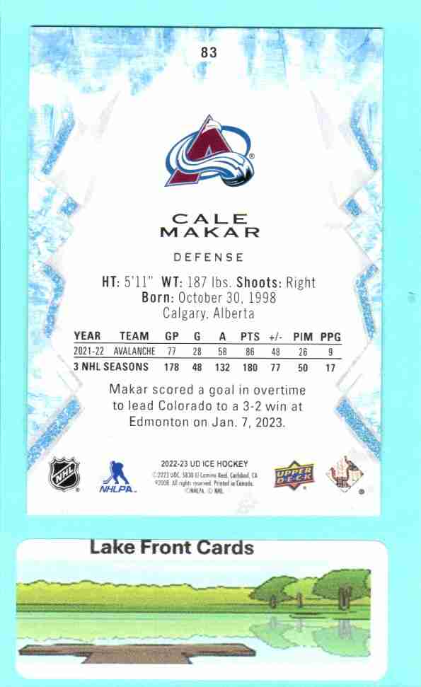 Cale Makar [Purple] #83 2022 Upper Deck Ice Hockey