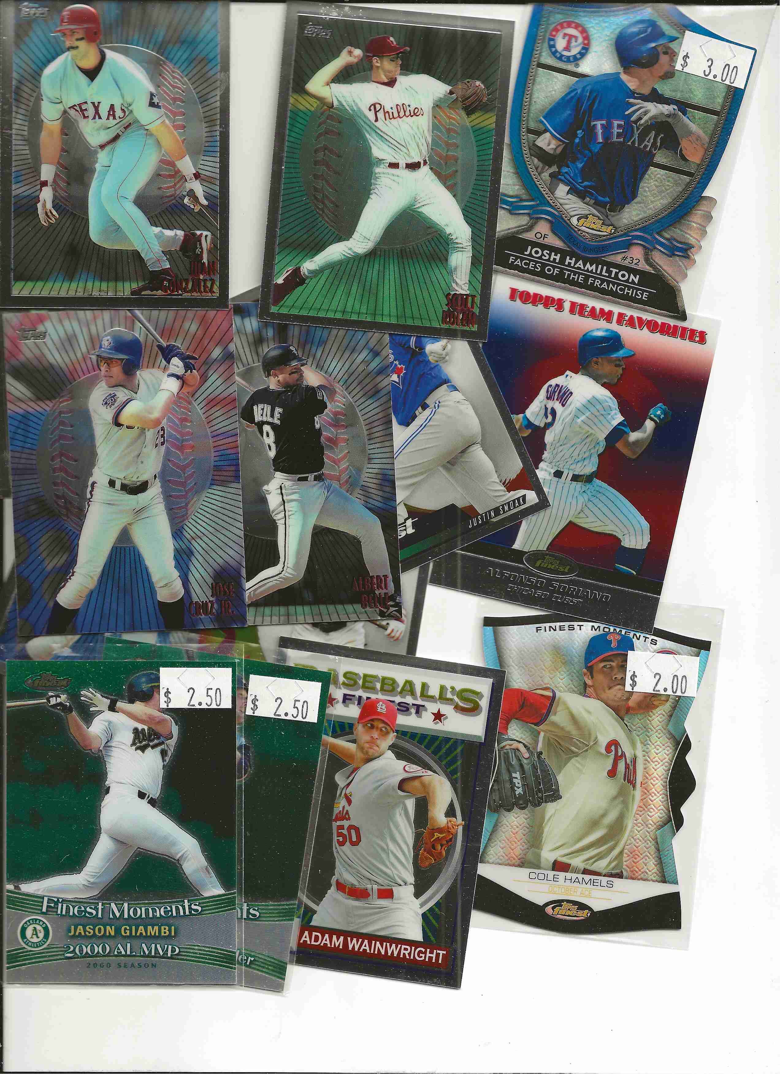 15 rookie cards. inserts 13 cards.2000 Finest 24-cards with protective covering. 36-base cards. Some stars/minor stars included Palmeiro, Molitor, Glavine, Biggio, Cole, Tanaka-RC, Thomas, Piazza, lESS THAN 9 CENTS PER CARD