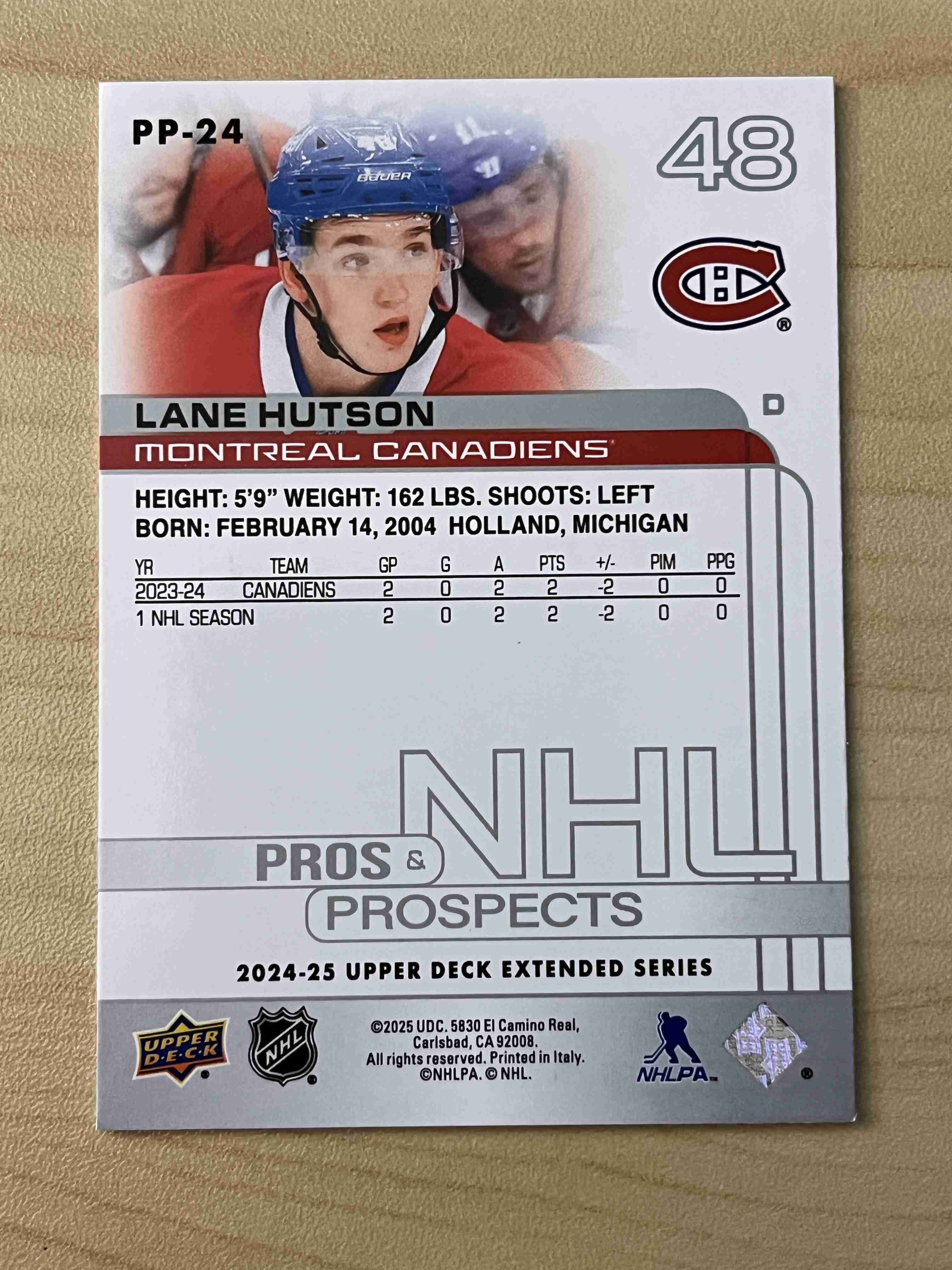 Lane Hutson 2024-25 UD Extended RC Pros & Prosects #PP-24