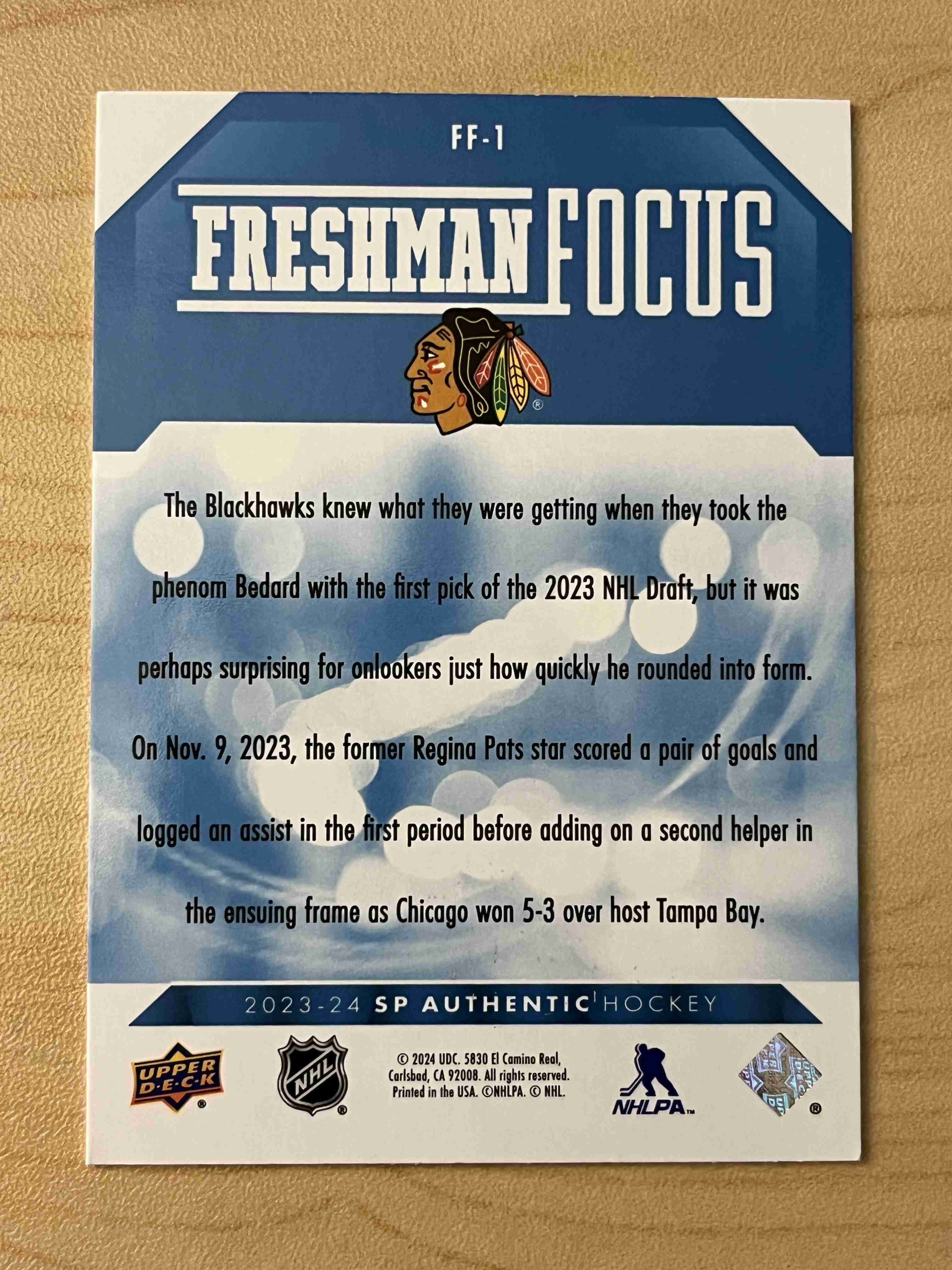 Connor Bedard 2023-24 SP Authentic RC Freshman Focus Blue