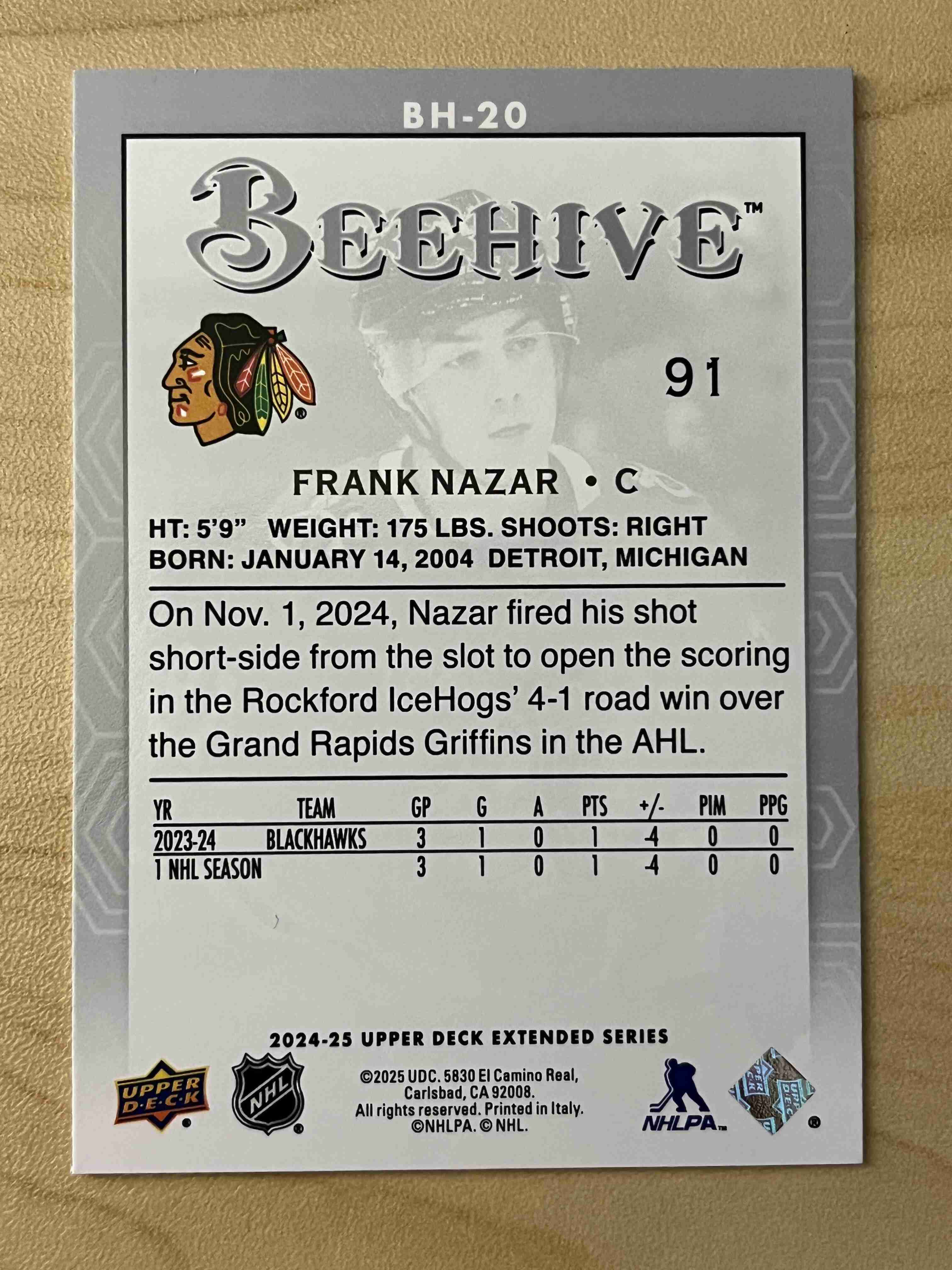Frank Nazar 2024-25 UD Extended RC Beehive #BH-20