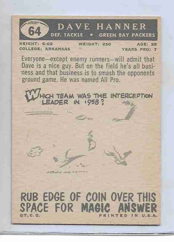 1959 Topps #64 ~ Dave "Hog" Hanner Green Bay Packers