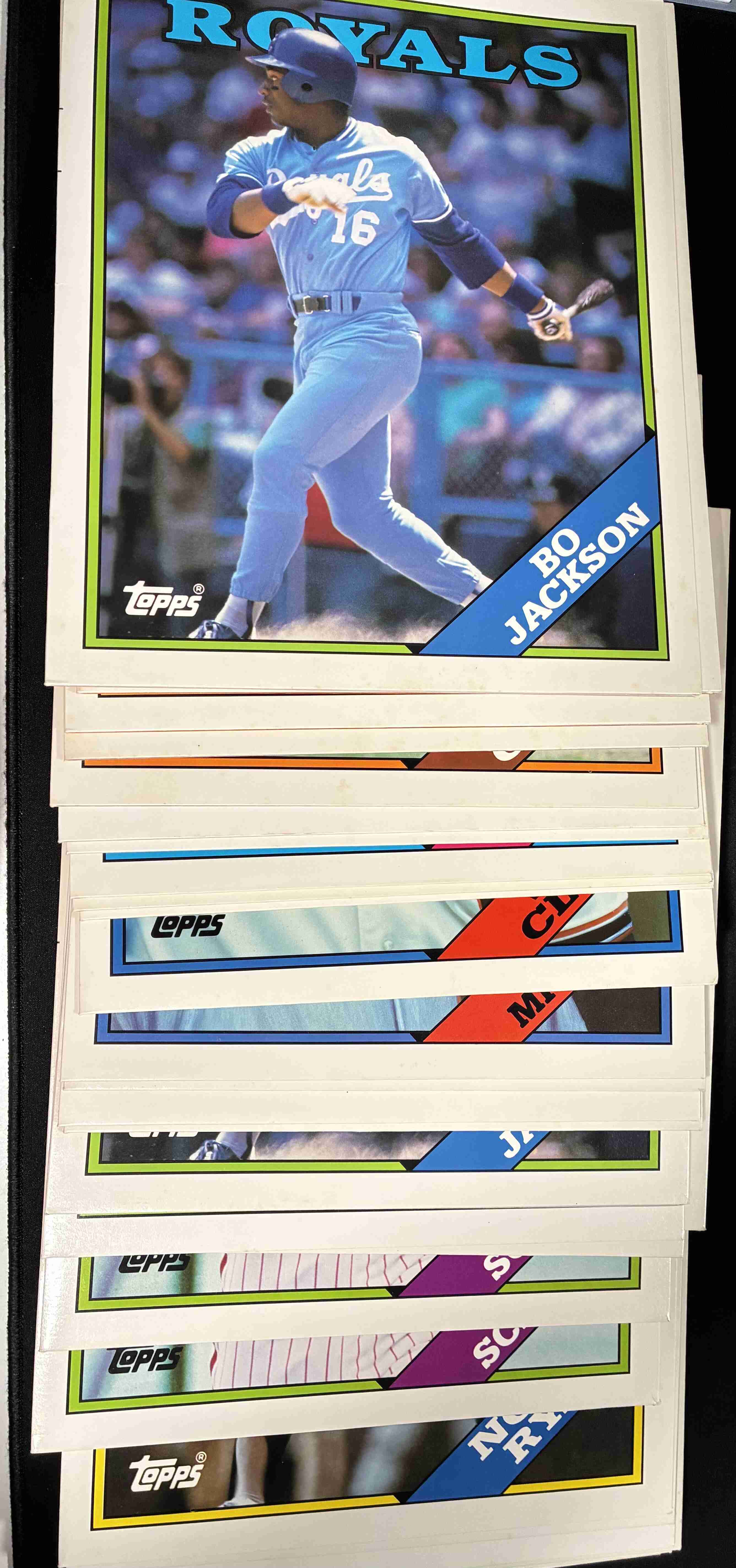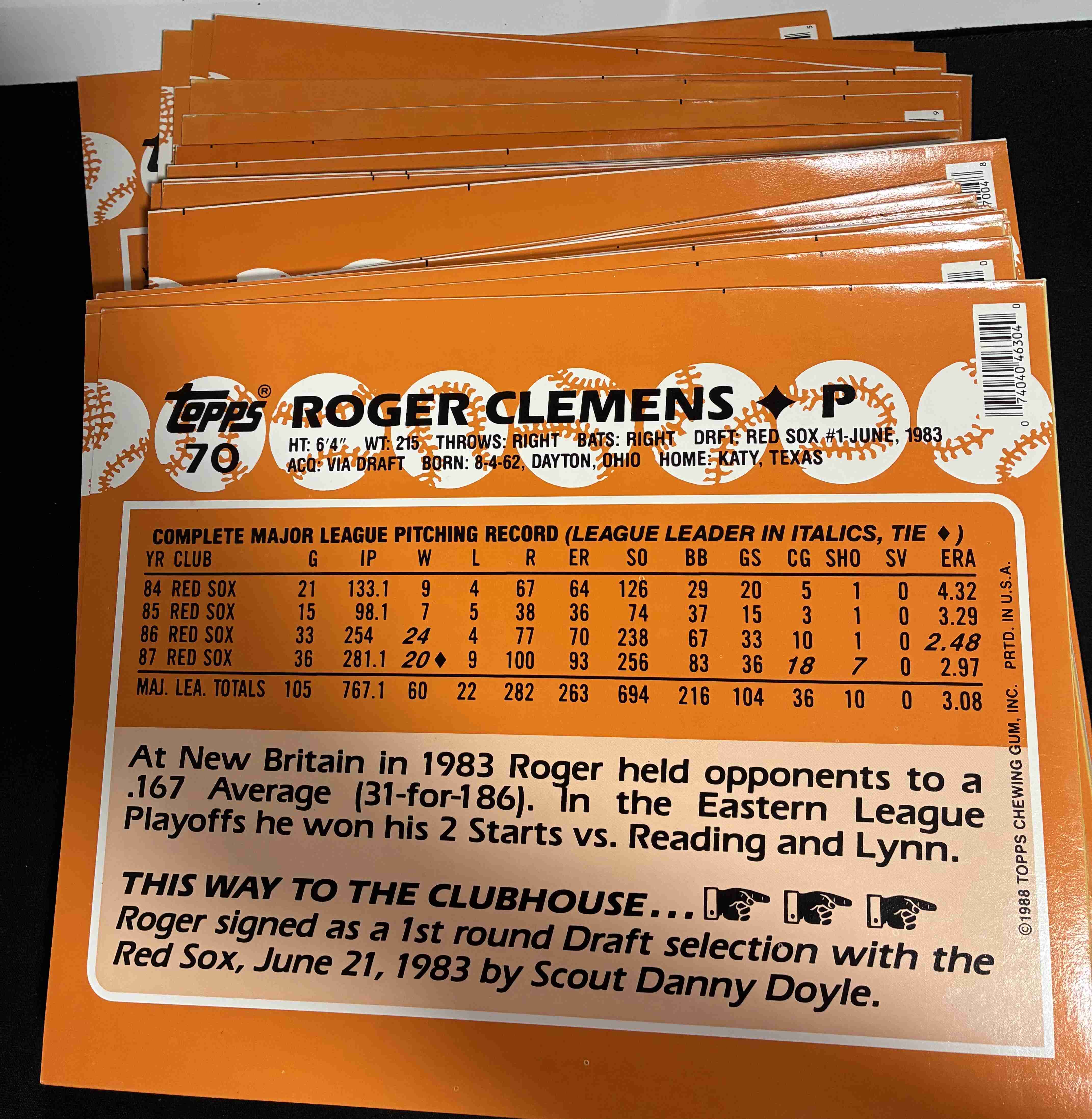 You are bidding on a lot of 38 1988 Topps Baseball Folders. They measure about 9.5 by 11.75. There are 4x Roger Clemens, 2x Ozzie Smith, 2x Kirby Puckett, 4x Rickey Henderson, 4x Nolan Ryan, 4x Mike Schmidt, 4x George Brett, 2x Bo Jackson, 2x Carlton Fisk, 2x Kevin Mitchell, 2x Will Clark, 2x Barry Larkin, 2x Robin Yount, and 2x Tony Gwynn. You don't come across these all that often anymore. Pease ask any questions before bidding. Apologies for expensive shipping, but its 6 pounds of folders!