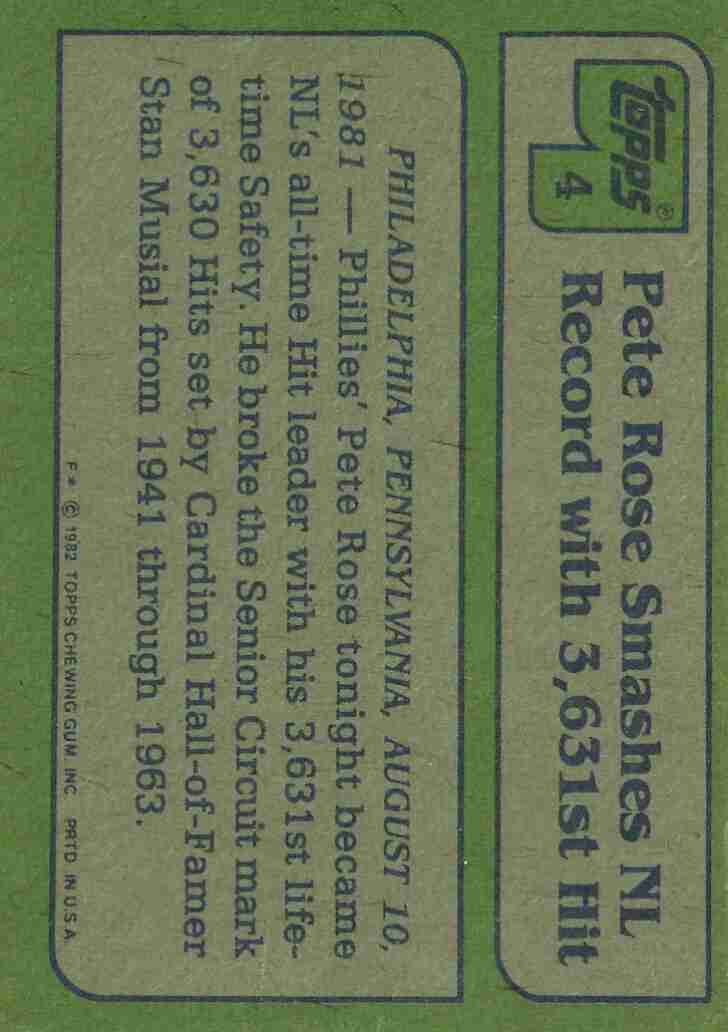 1982 Topps #4 '81 Highlights Rose Setrs Mark