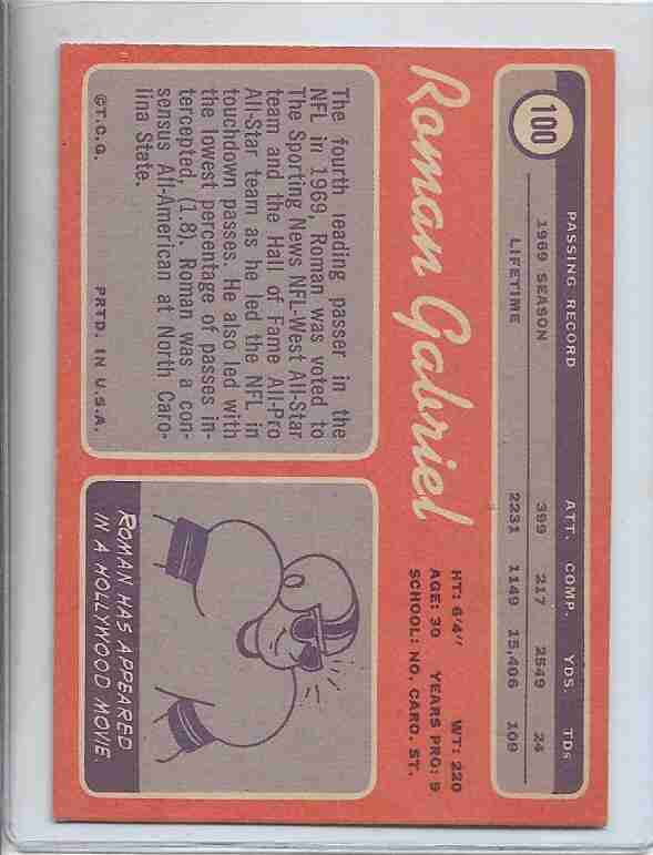 1970 Topps #100 ~ Roman Gabriel Los Angeles Rams
