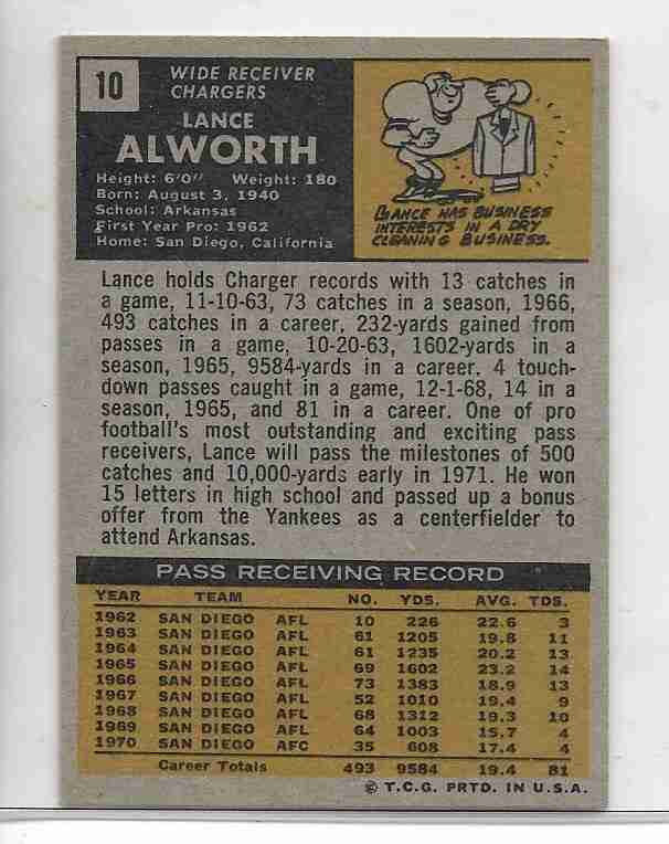 1971 Topps #10 ~ Lance Alworth San Diego Chargers HOF