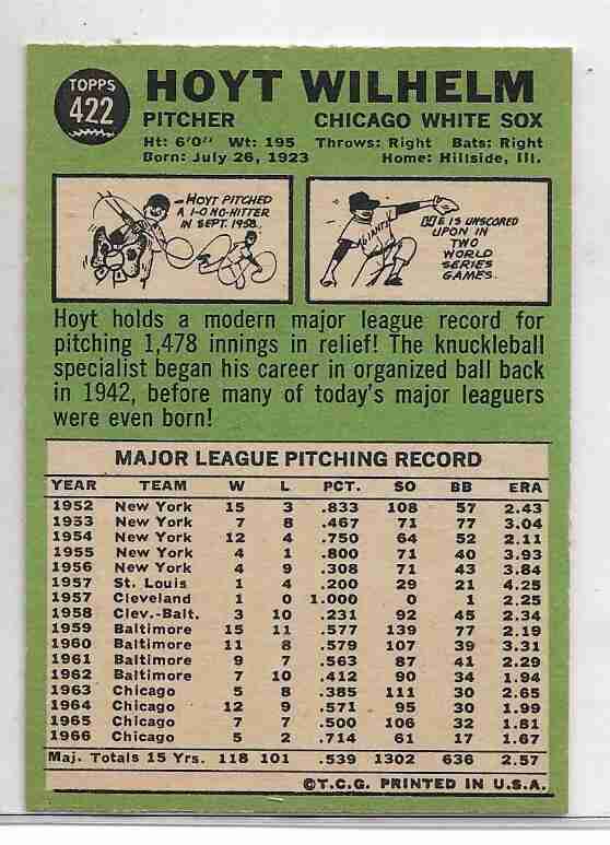 1966 Topps #422 ~ Hoyt Wilhelm Chicago White Sox HOF