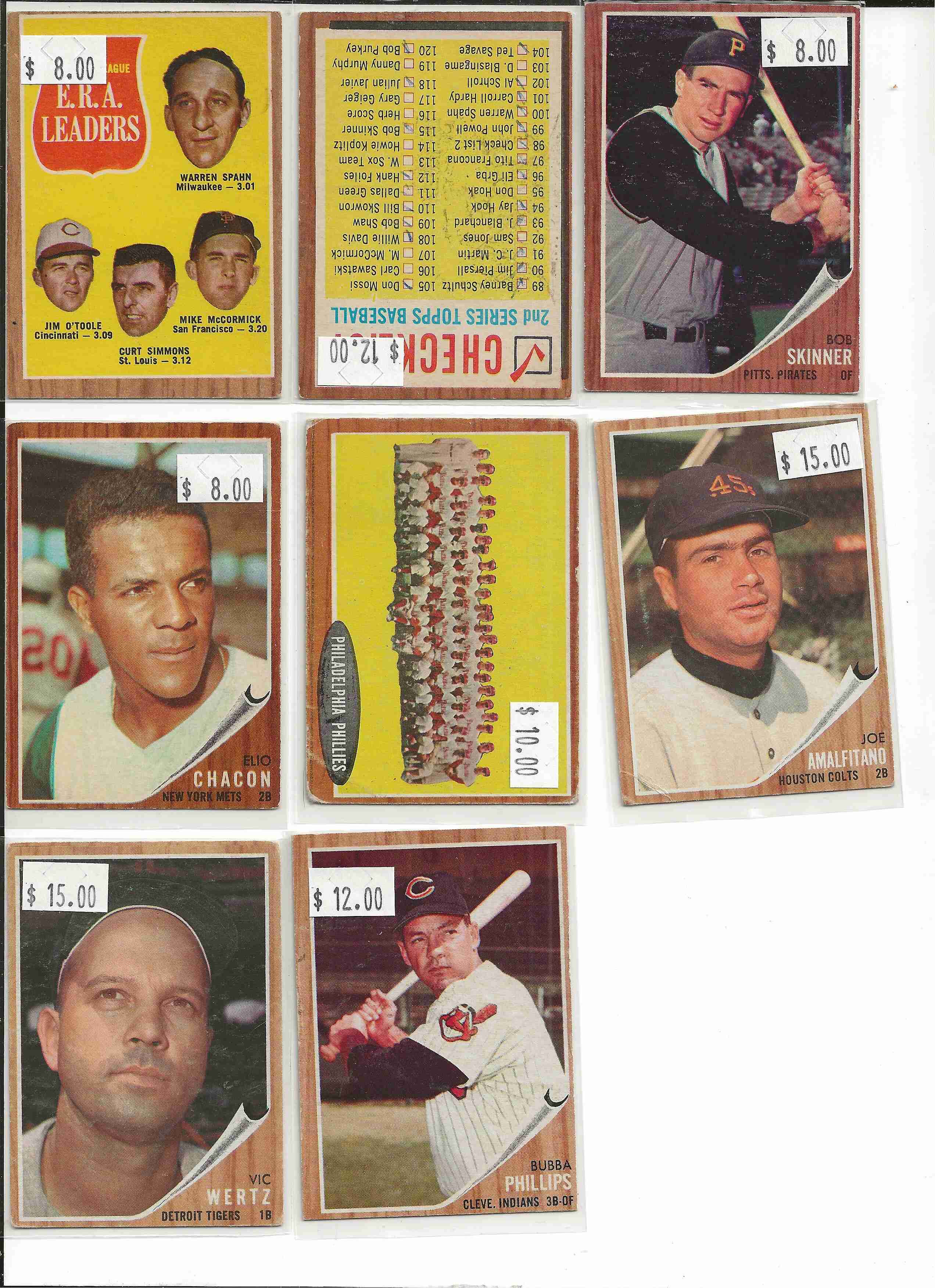BB 1962 Topps 8-card lot Hi Numbers BV $88 #56 - 511.