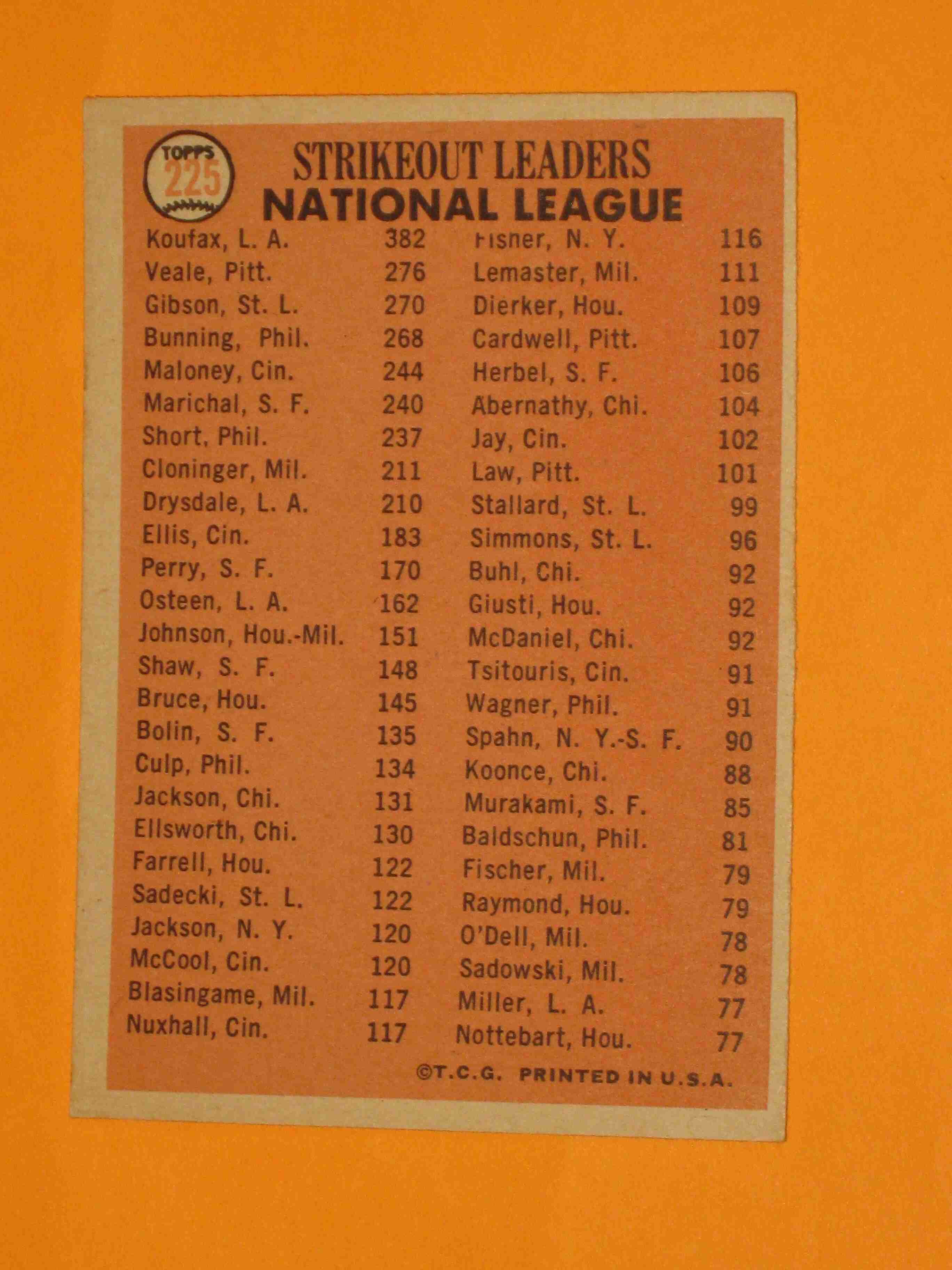 1966 Topps NL KO Ldrs #225 Koufax Veale Gibson NICE