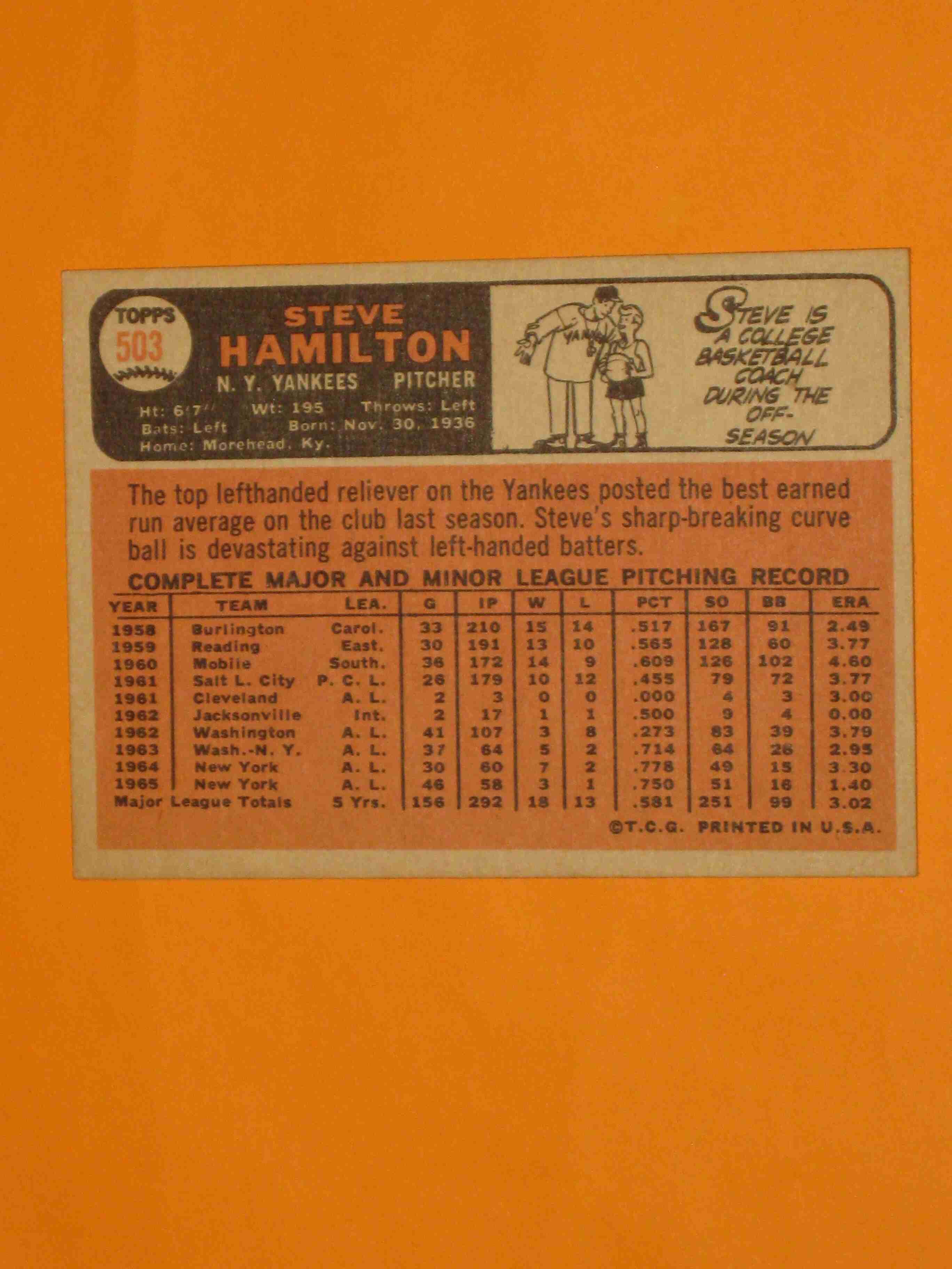 1966 Topps Steve Hamilton #503 NY Yankees SEMI HIGH #