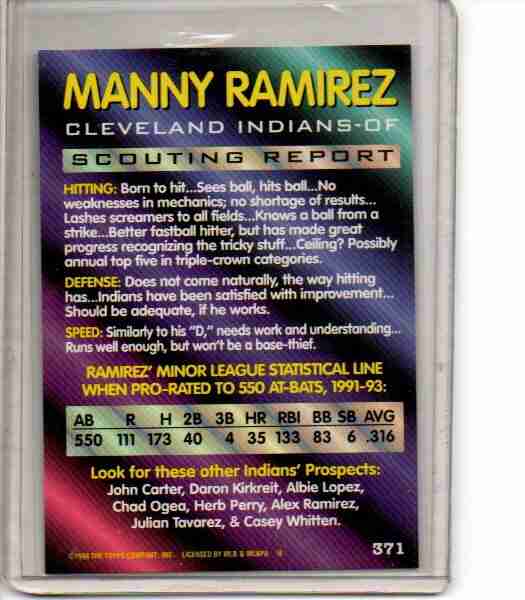 MANNY RAMIREZ - 1994 BOWMAN #371