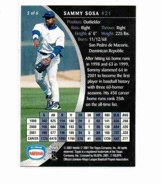 SAMMY SOSA - 2001 TOPPS NESTLE ICE CREAM