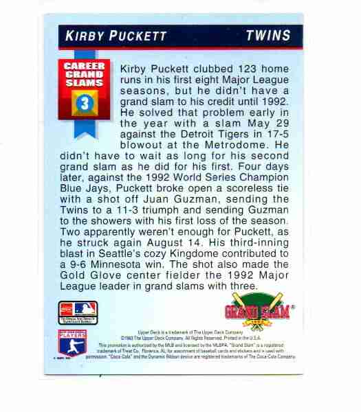 KIRBY PUCKETT - 1993 UPPER DECK COLLECTORS SERIES 26 OF 28