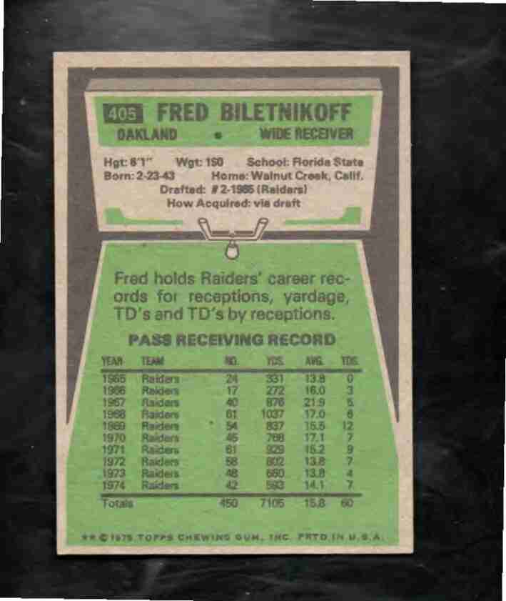 1975 Topps # 405 HOFer FRED BILETNIKOFF Raiders