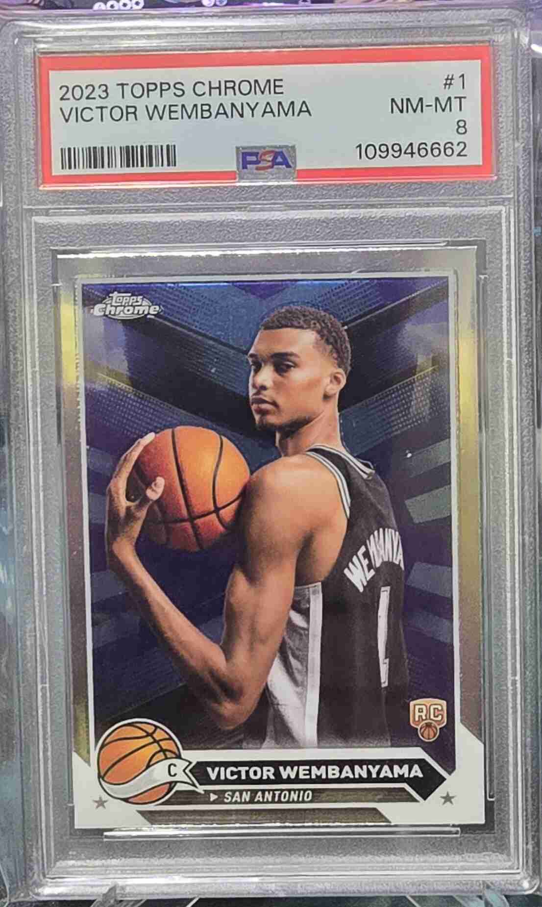 2023-24 Topps Chrome Victor Wembanyama RC PSA 8 All my auctions ship with tracking.