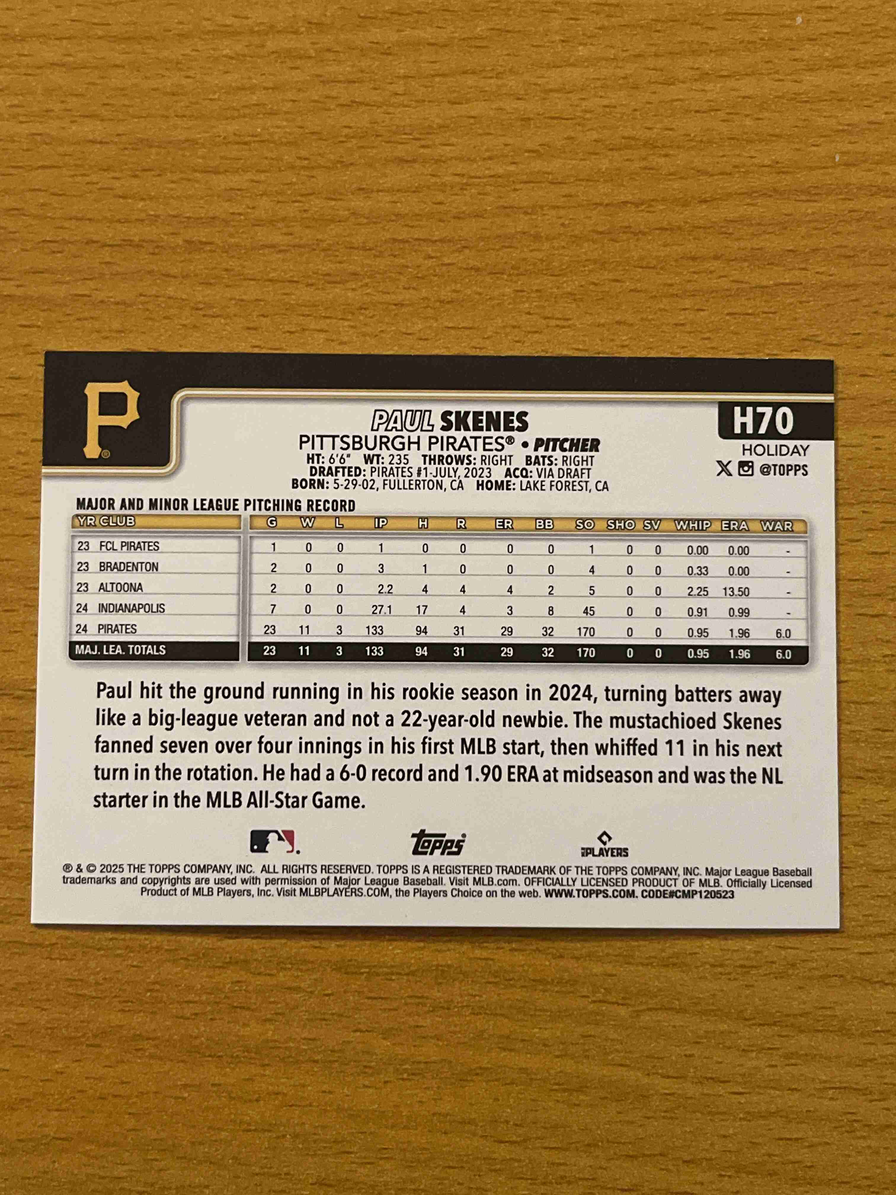 Paul Skenes 2025 Topps Holiday Image SP Variation #H70