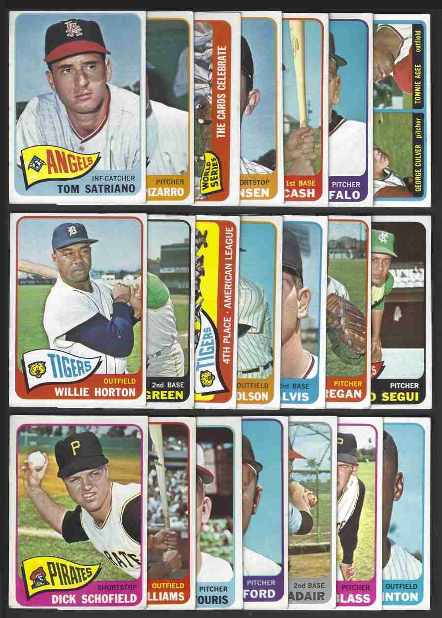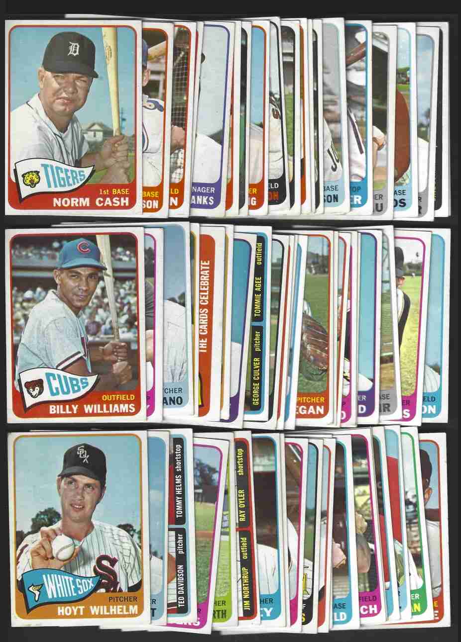 1965 Topps Baseball Lot (62) -Higher Grade-. No's-14,19,27,32,34,35,37,43,51, 53,54,71,75,76,89,92,94,102,113,116,117,121,124,125,139,146,153,159,166,168, 173,183,185,191,197,206,218,220(HOF),221,228,231,232,235,242,243,246,258,259, 262,263,265,266,271,274,276(HOF),283,291,292,301,312,346,353. Excellent large lot of 1965 Topps Baseball cards. This is a higher-grade lot. Cards have minor flaws; most have nice corners. Nice lot! Please review scans carefully for condition.