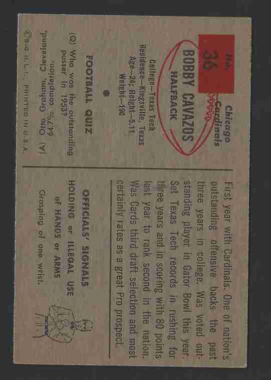 1954 Bowman Bobby Cavazos (RC) -#36- Cardinals