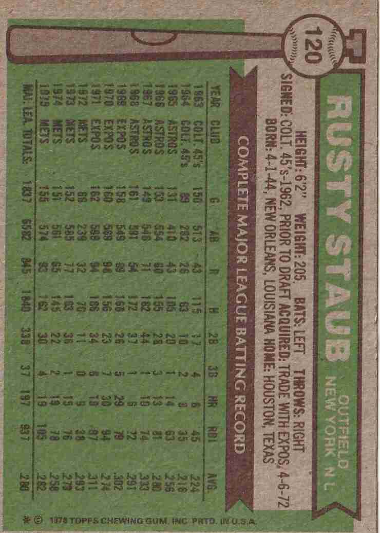 1976 Topps #120 Rusty Staub NY Mets