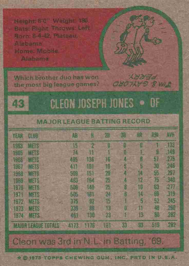 1975 Topps #43 Cleon Jones NY Mets