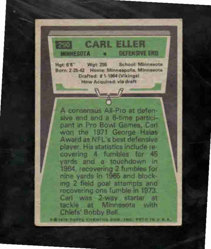 1975 Topps # 290 HOFer CARL ELLER Vikings