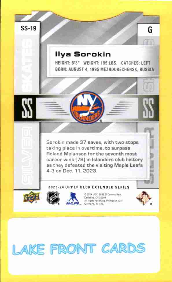 Ilya Sorokin #SS-19 2023 Upper Deck Silver Skate