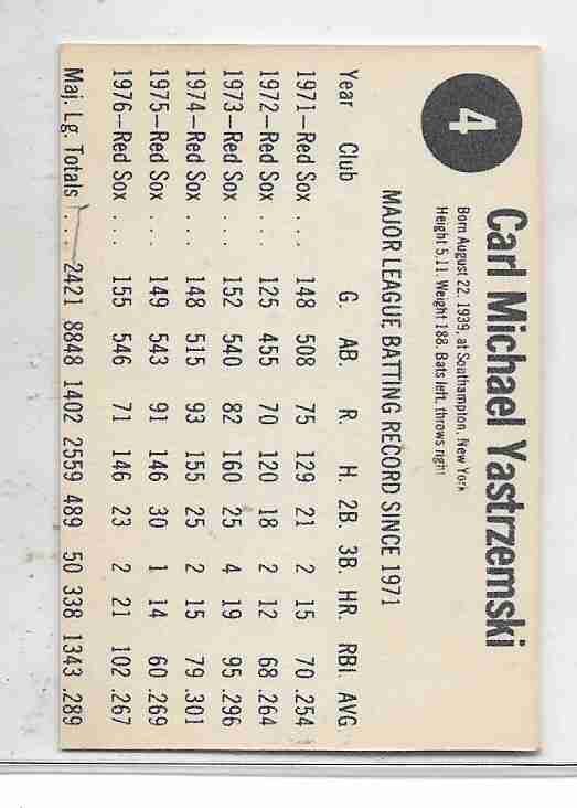 1977 Hostess #4 ~ Carl Yastrzemski Boston Red Sox HOF