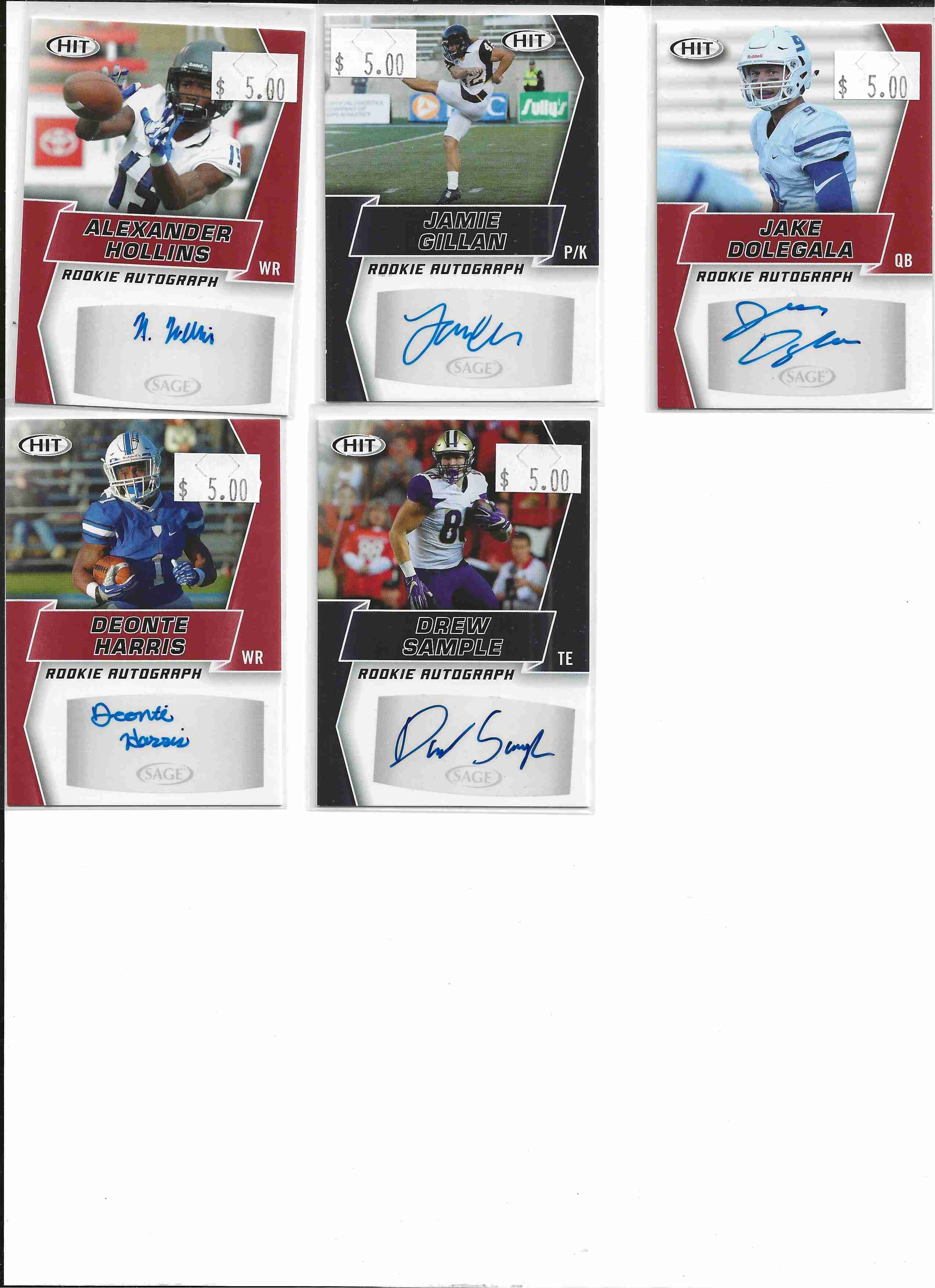 FB AUTO 5-card lot 2019 Sage Hit 5 autos