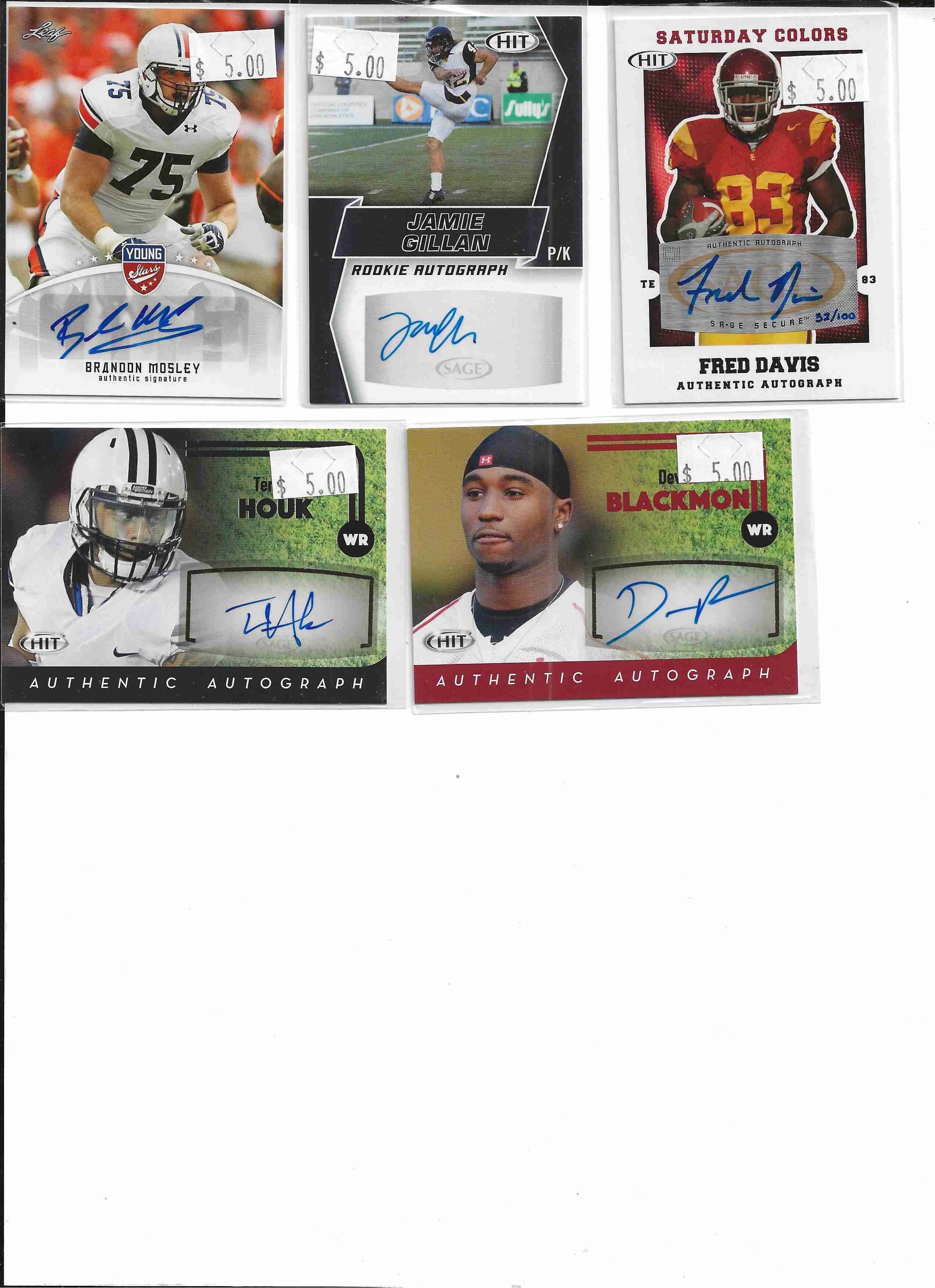 FB Auto 5-card lot 2007-Hit, 2012-Leaf 3-autos 2019 Hit