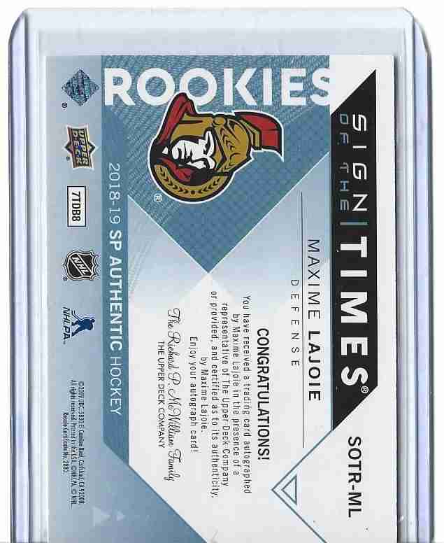 2018/19 SPA MAXIME LAJOIE SIGN OF THE TIMES ROOKIE #23/99
