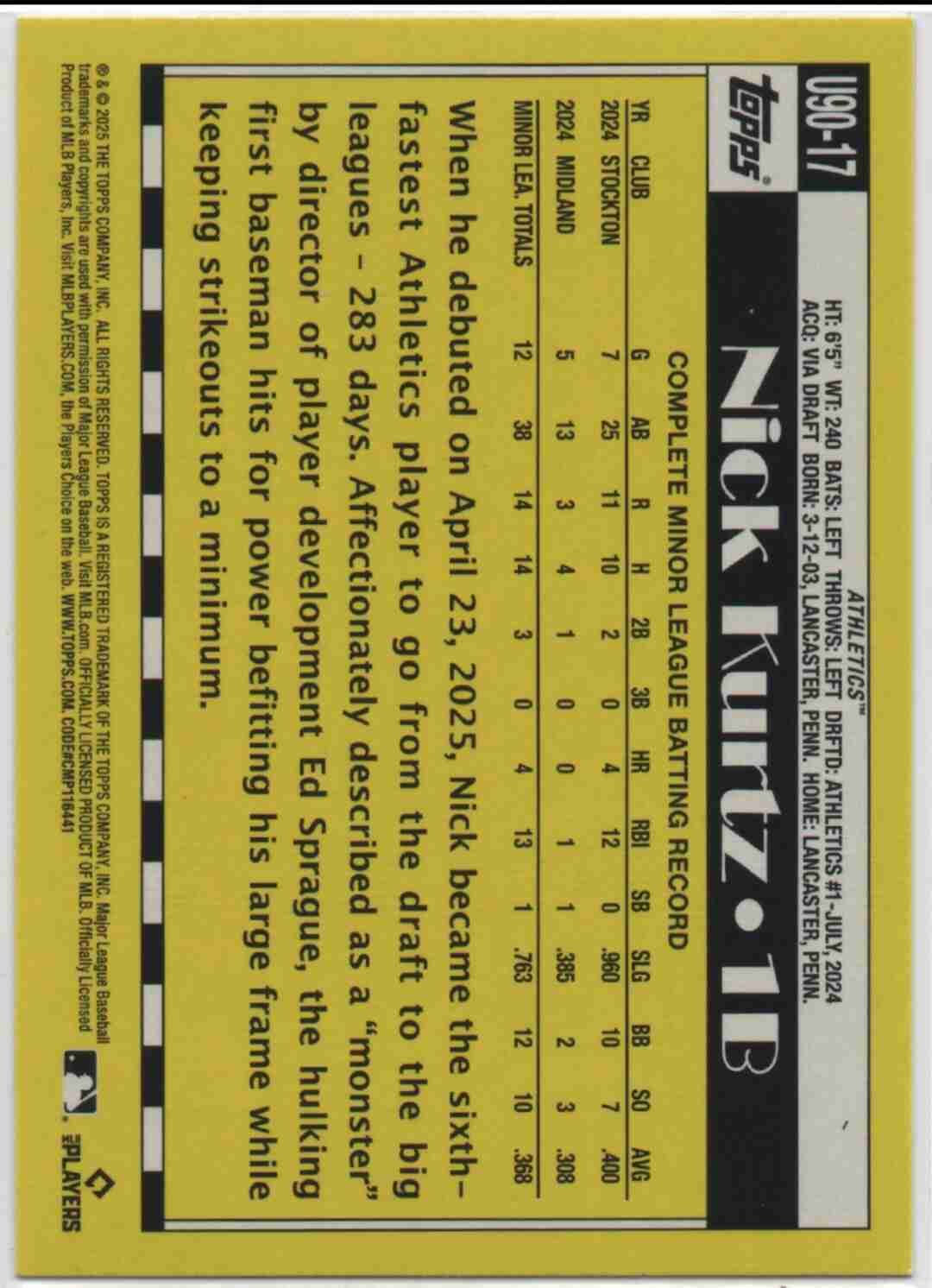 Nick Kurtz 2025 Topps Update 1990 Foil Rookie
