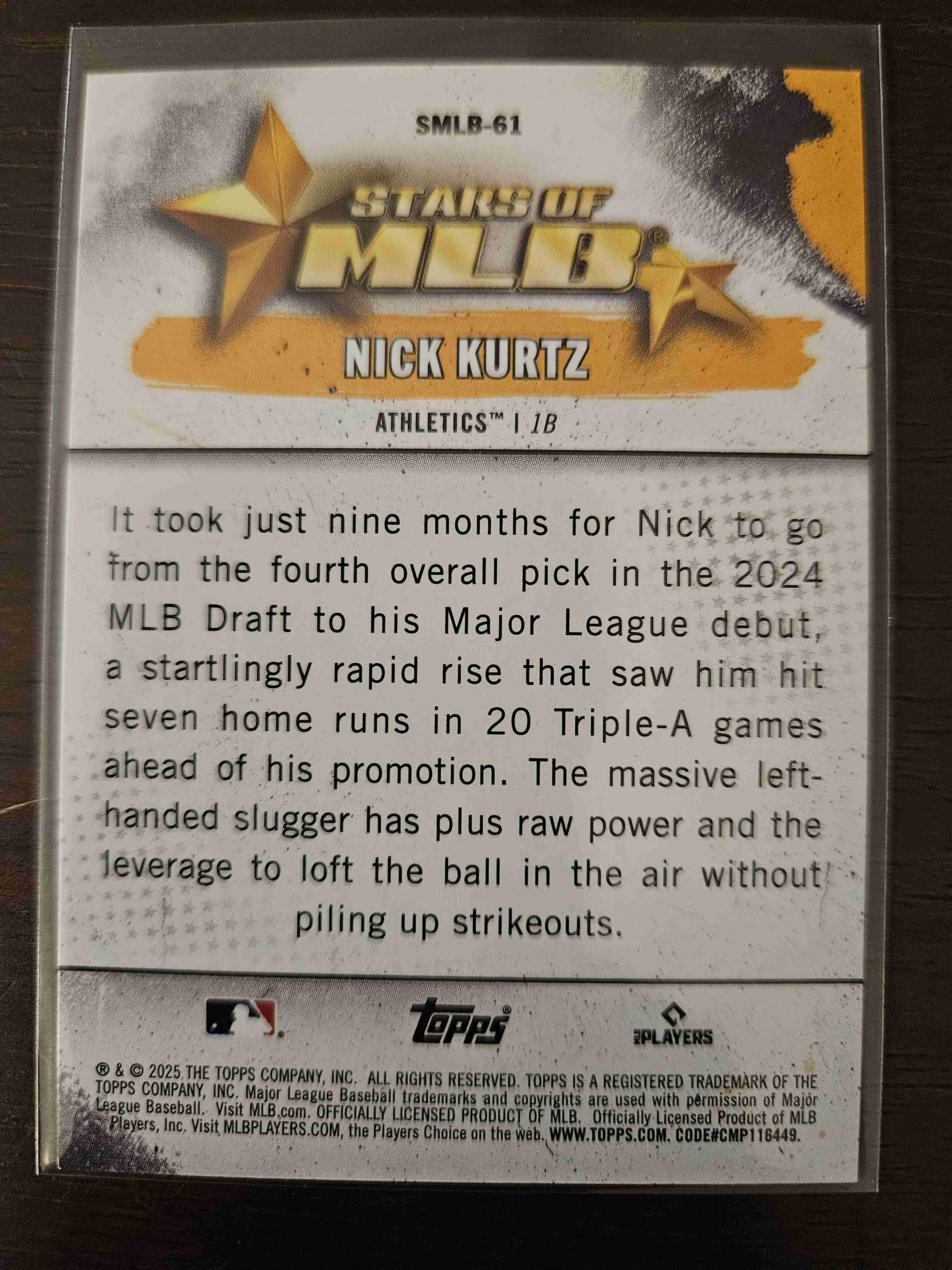 Nick Kurtz 2025 Topps Update Stars of MLB Rookie
