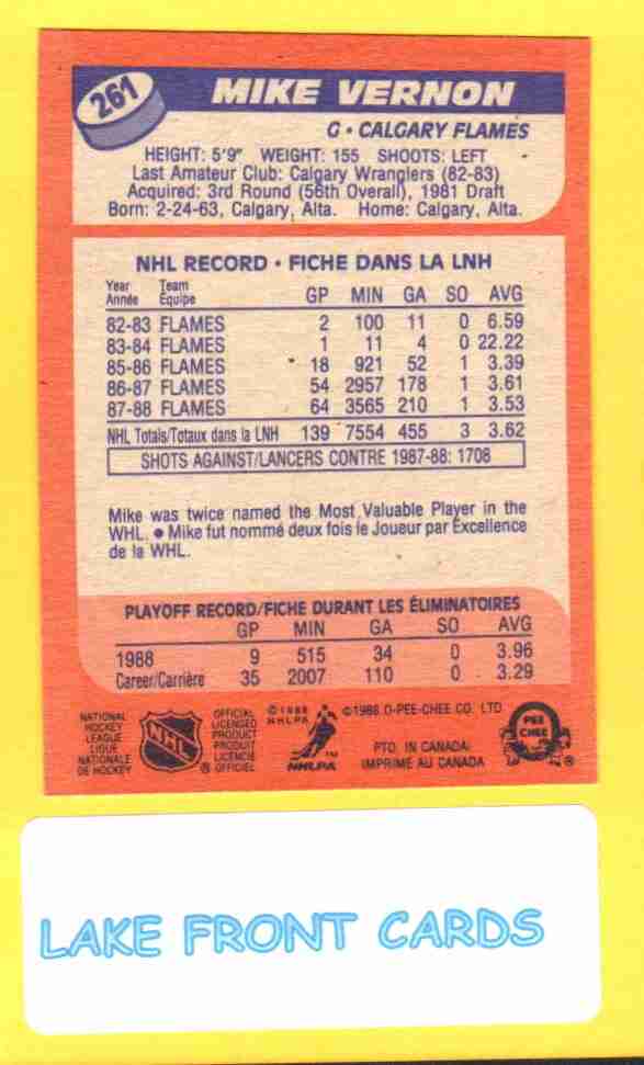 Mike Vernon #261 1988 O-Pee-Chee