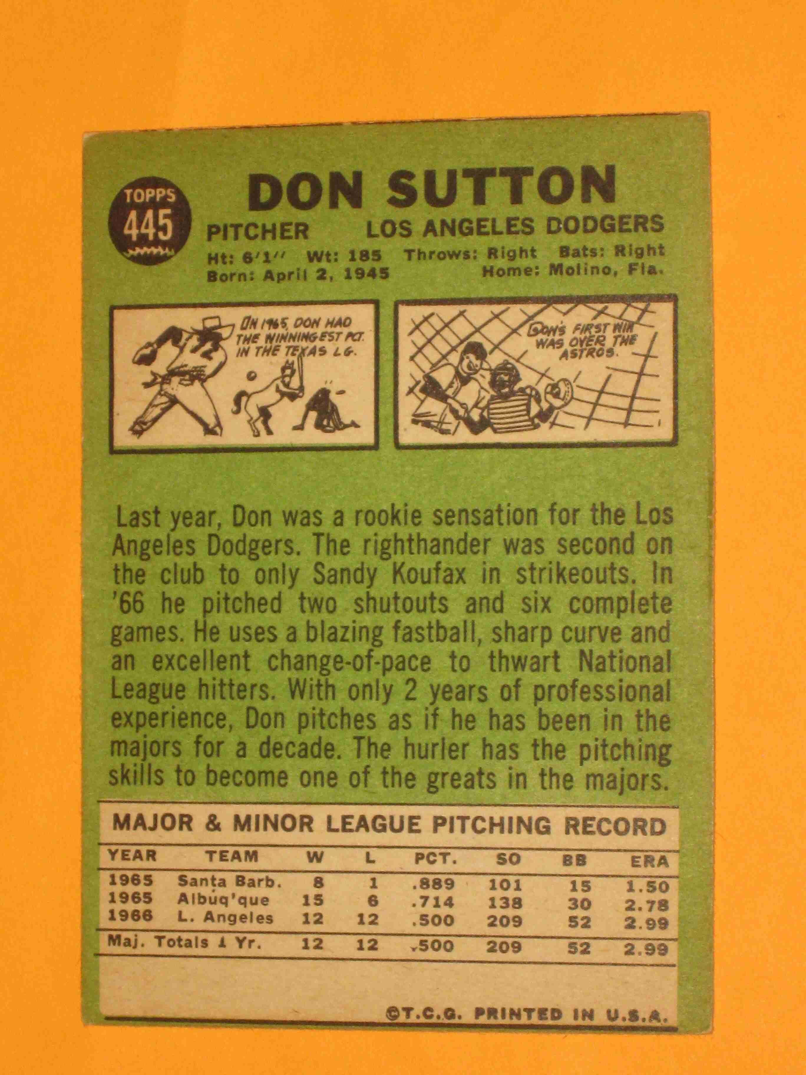 1967 Topps Don Sutton #445 Los Angeles Dodgers NICE