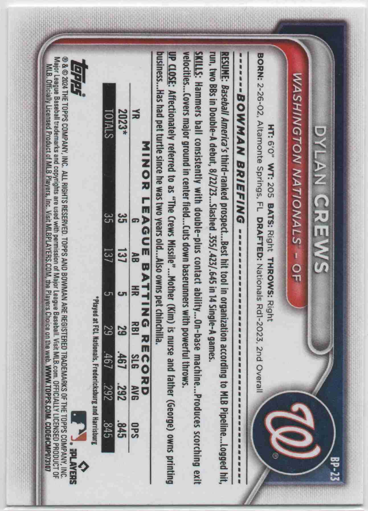 Dylan Crews 2024 Bowman 1st Bowman Prospect #BP-23