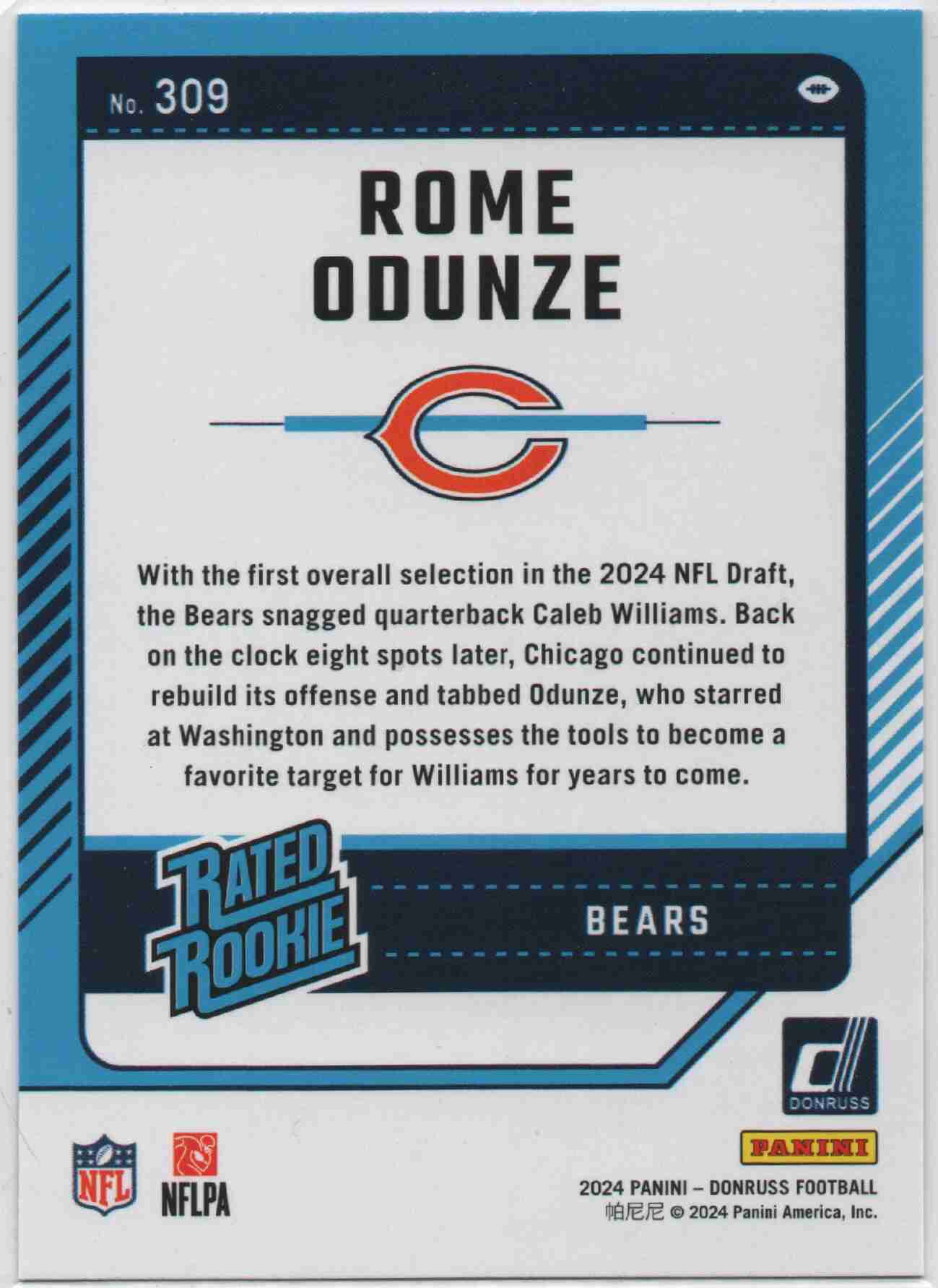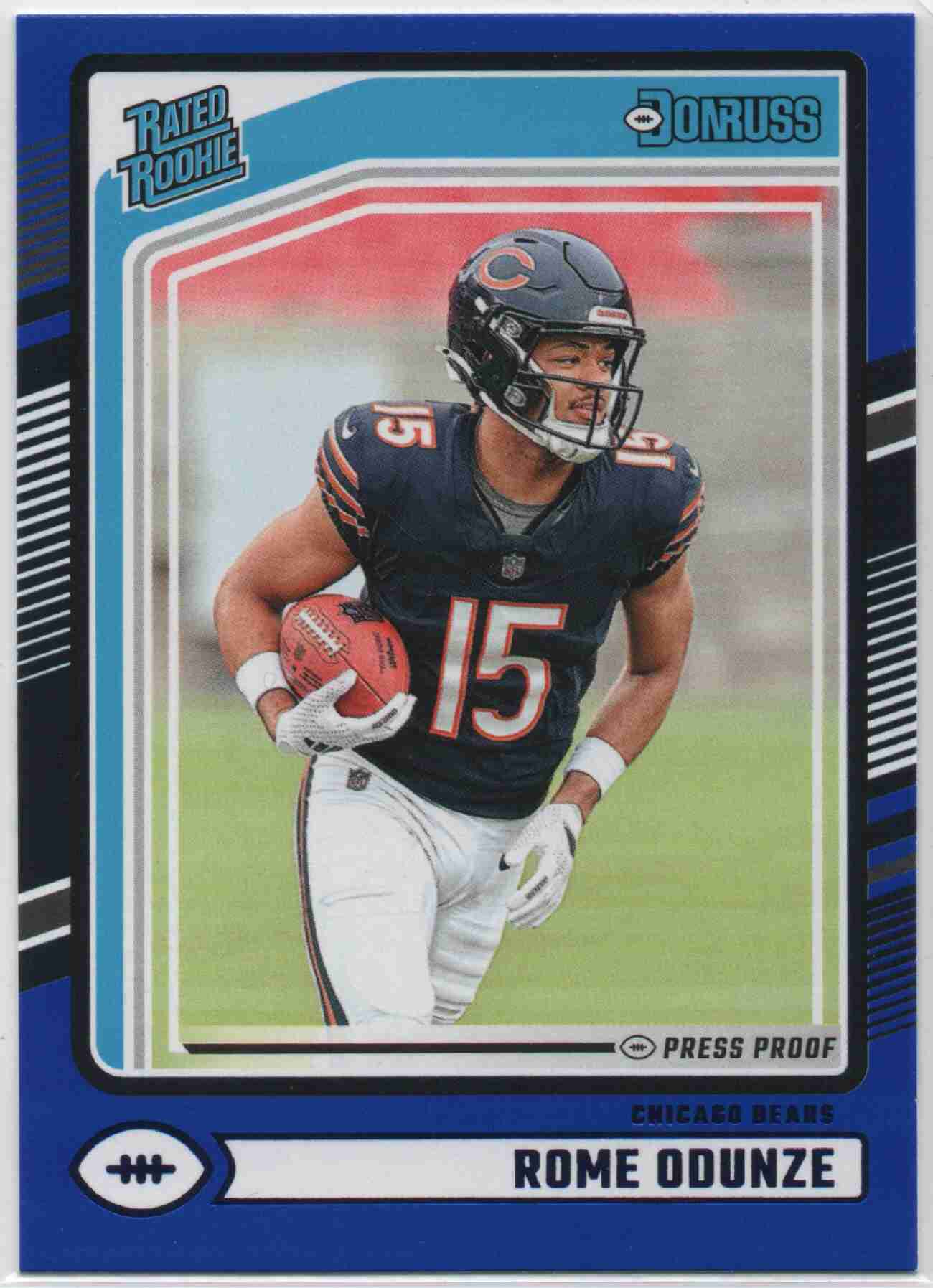 Rome Odunze 2024 Donruss Rated Rookie Blue Press Proof