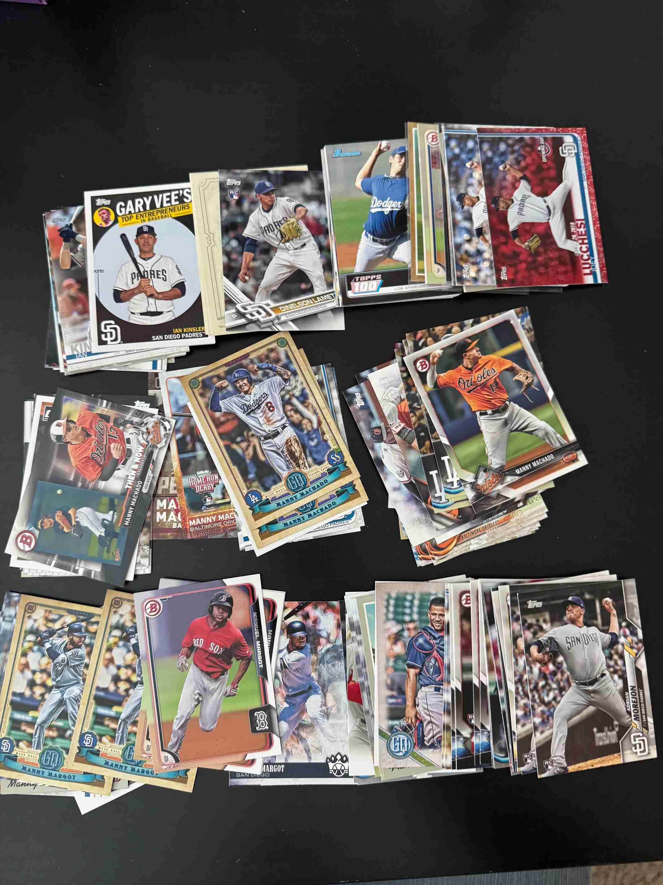 Some rookie cards, inserts, and parallels may be included in the lot. See photos for some examples of what is included in the lot. Examples of players included in the lot are: Manny Machado, Travis Jankowski, Ian Kinsler, Francisco Mejia, Wil Myers, Yommy Pham, Hunter Renfroe, and MORE.