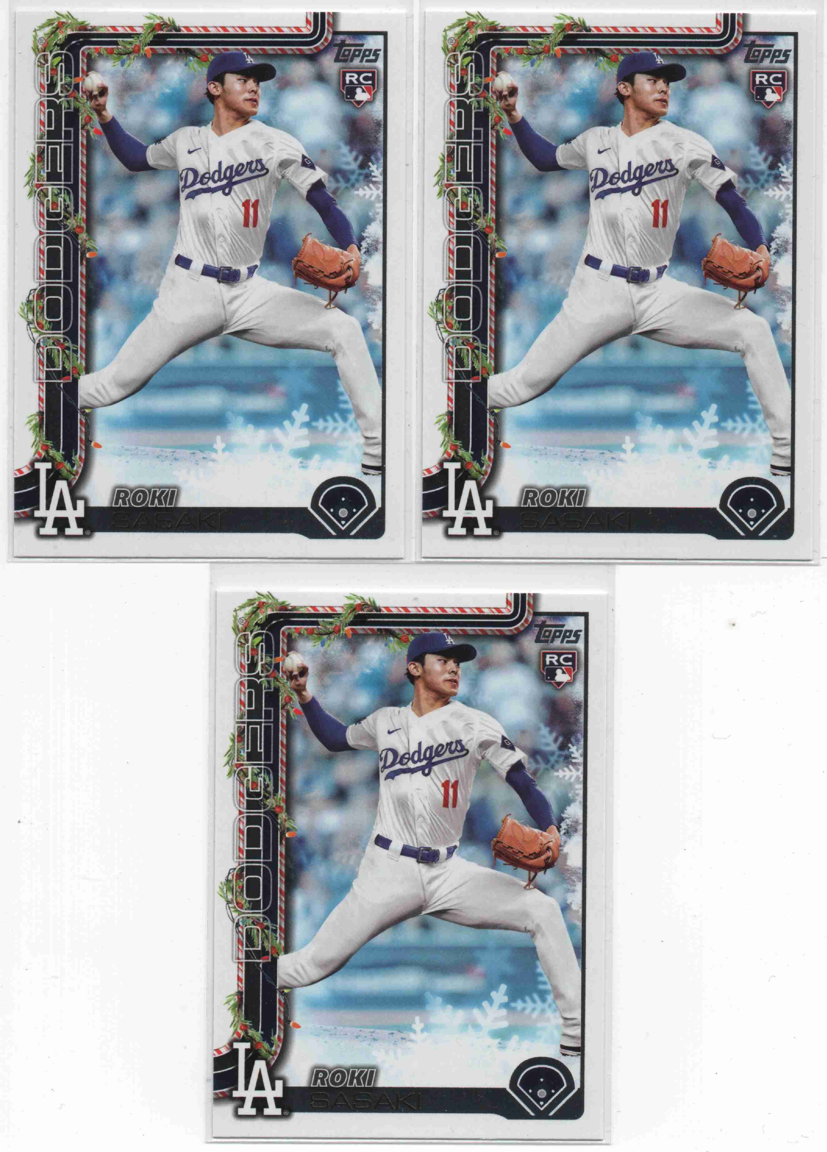 Roki Sasaki 2025 Topps Holiday 3 Card Rookie Lot