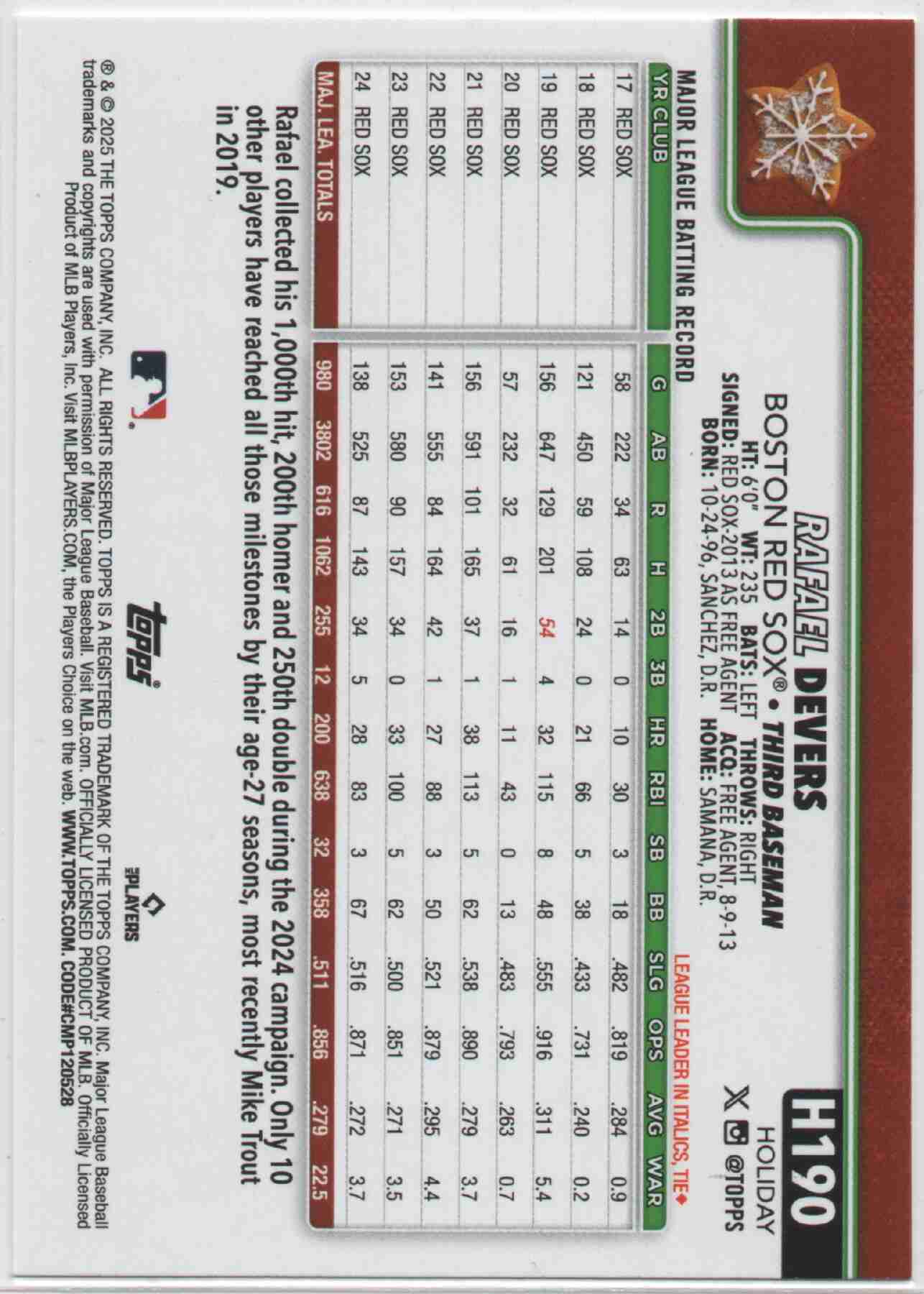 Rafael Devers 2025 Topps Holiday Cookie Back SP