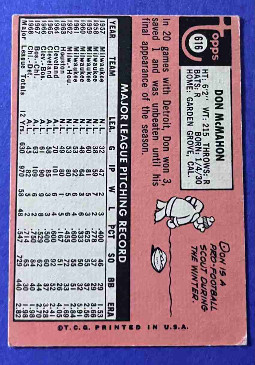 69 Topps DON MCMAHON Hi #616 ++