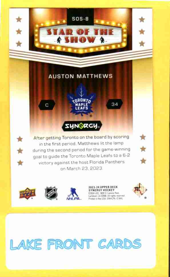 Auston Matthews #SOS-8 2023 Upper Deck Synergy Star of the Show
