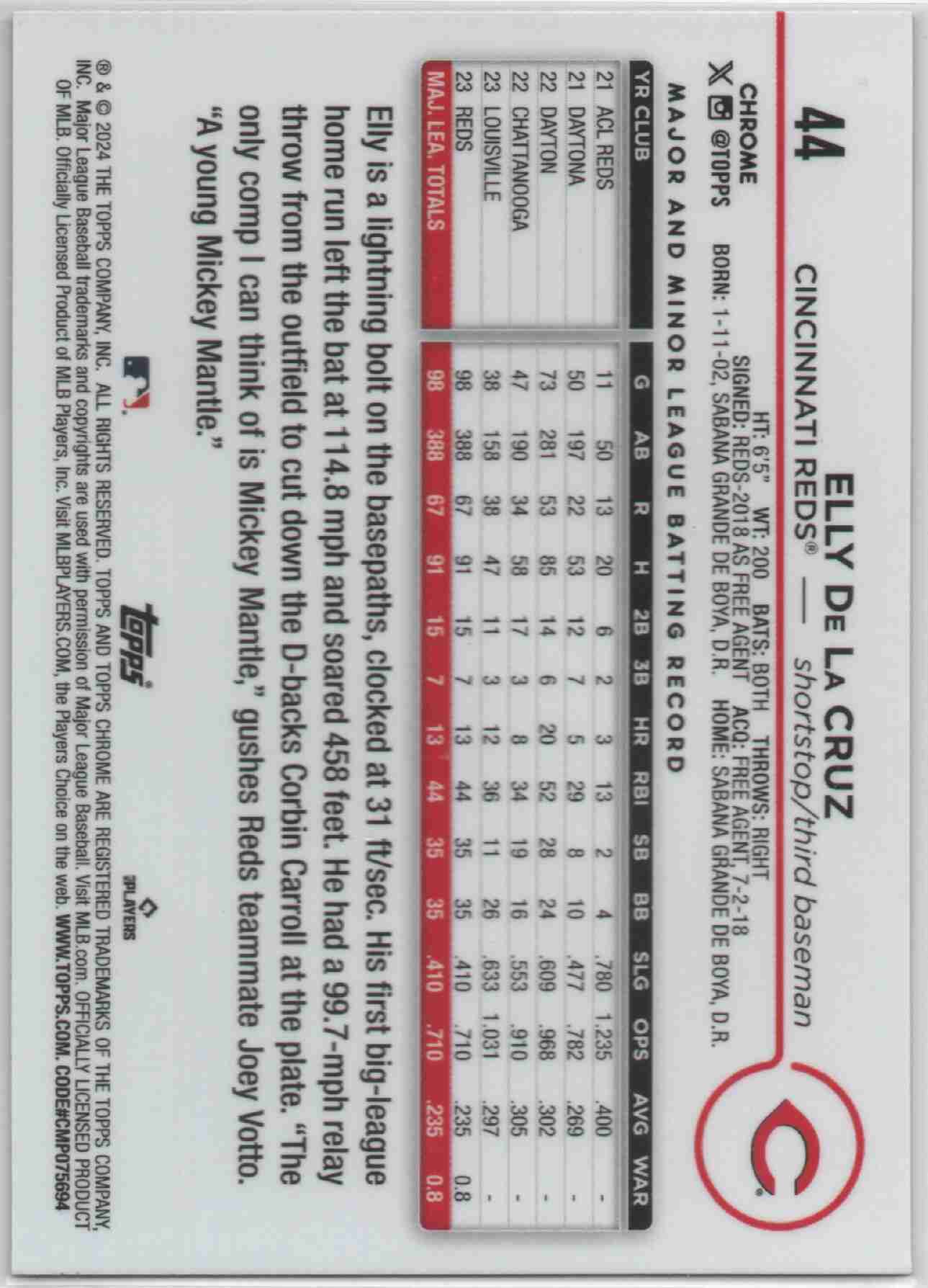 Elly De La Cruz 2024 Topps Chrome #44 Rookie